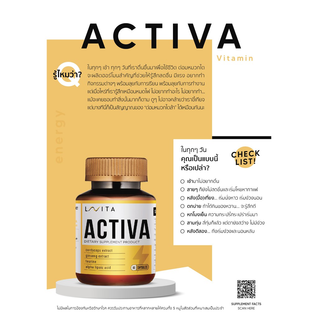 ผลิตภัณฑ์เสริมอาหาร LAVITA ACTIVA (แอคทีว่า) บรรจุ 60 แคปซูล