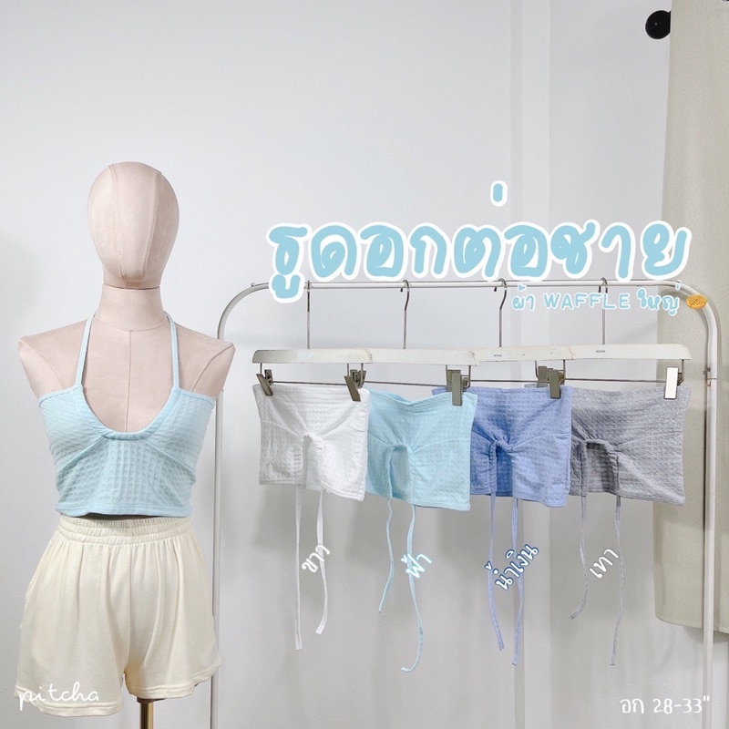 [พร้อมส่งมาก] เสื้อครอป รูดอกต่อชาย สายคาเฟ่ ใส่ชิวๆ พรัอมส่ง VN053