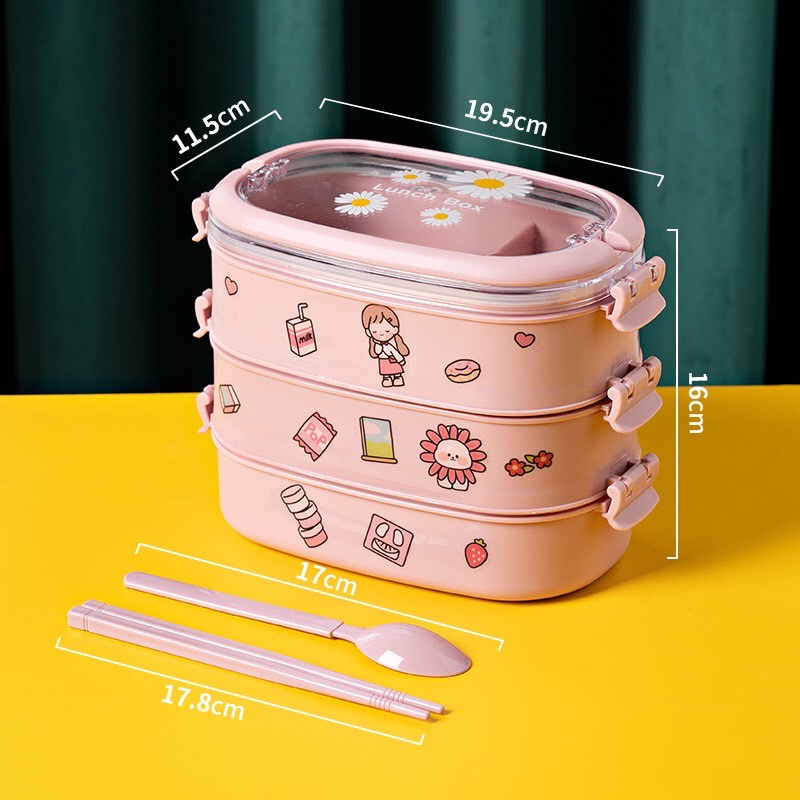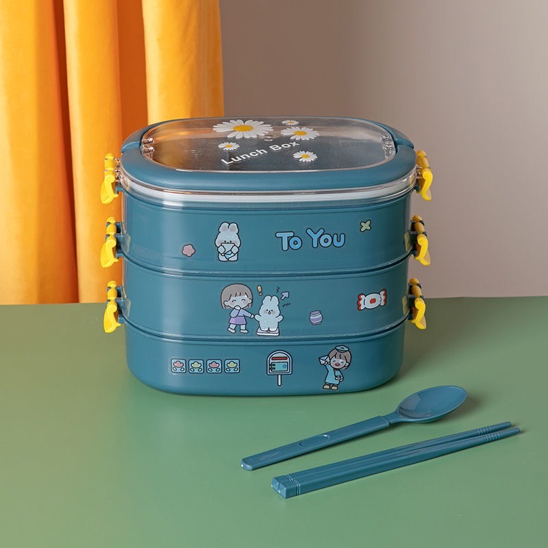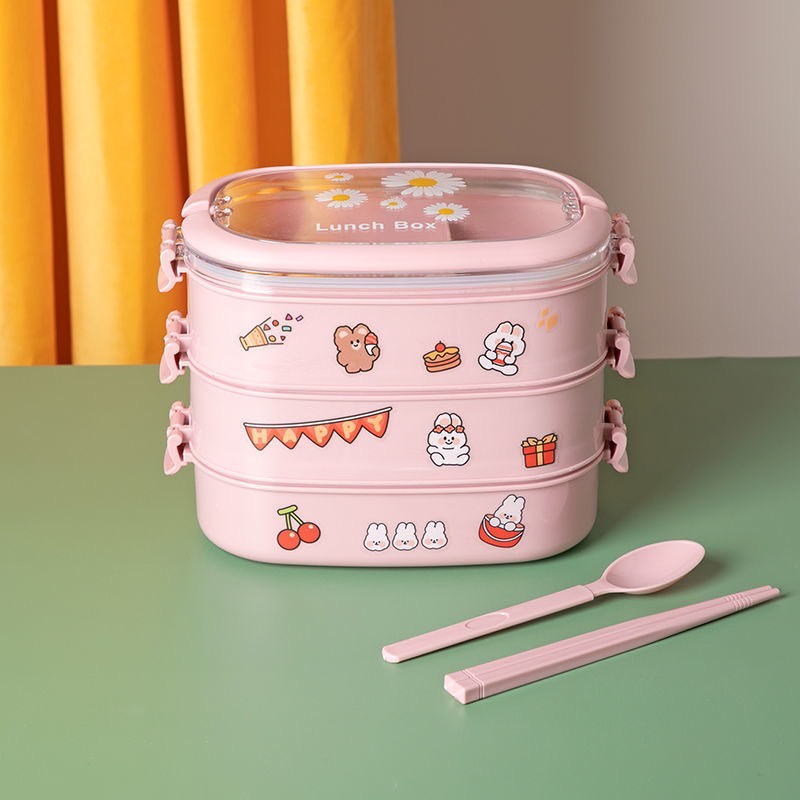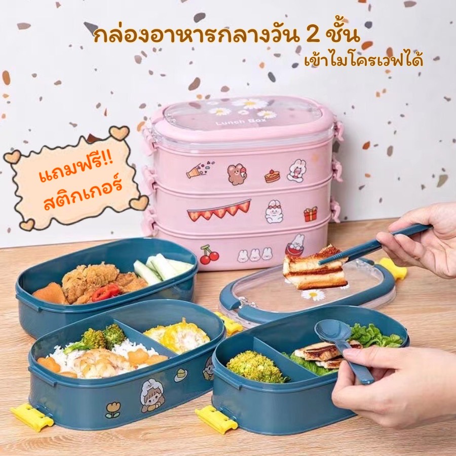 ปิ่นโตใส่อาหาร ปิ่นโตไมโครเวฟ ปิ่นโต 2 - 3 ชั้น พร้อมช้อนตะเกียบในตัว