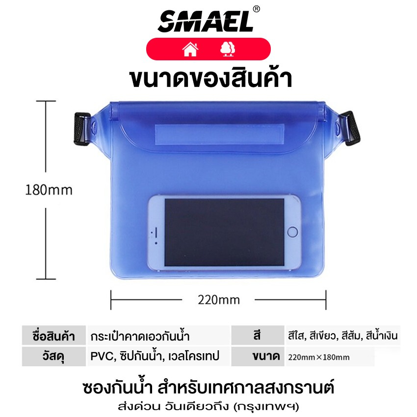 SMAEL กระเป๋าคาดเอวกันน้ำ ซองกันน้ำสำหรับเทศกาลสงกรานต์ ซองกันน้ำคาดเอว กระเป๋ากันน้ำ กระเป๋าใส ใส่โทรศัพท์ #008 ^SA