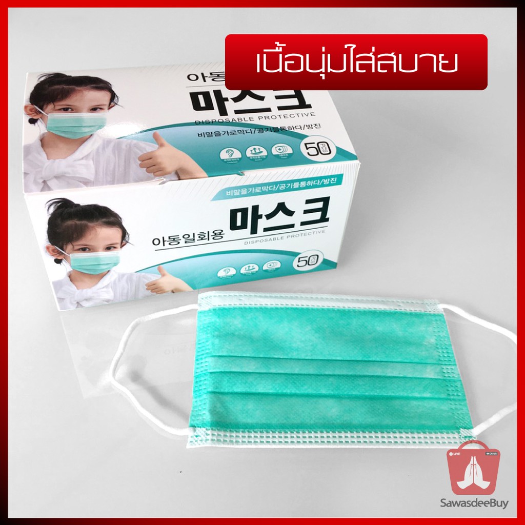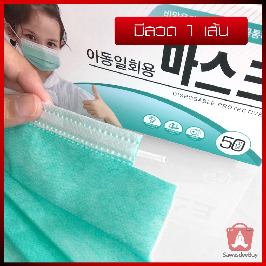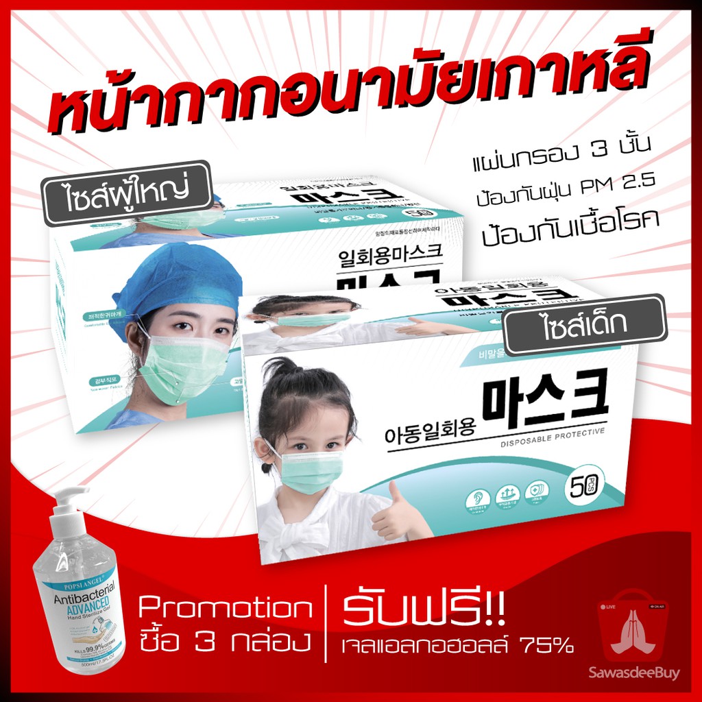 หน้ากากเกาหลี หน้ากากอนามัยเกาหลี 3 ชั้น มีทั้งไซส์ผู้ใหญ่และเด็ก 1 กล่อง บรรจุ 50 ชิ้น