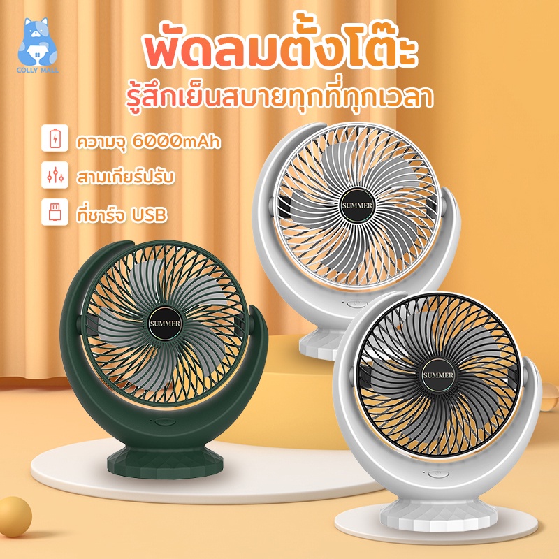 พัดลม พัดลมตั้งโต๊ะ พัดลมพกพา 6000mAh แบตเตอรี่ความจุสูง พัดลมไร้สาย พัดลมเล็กต้ังโต๊ะ พัดลมมินิแบบ ลมแรง3เท่า ชาร์จ USB