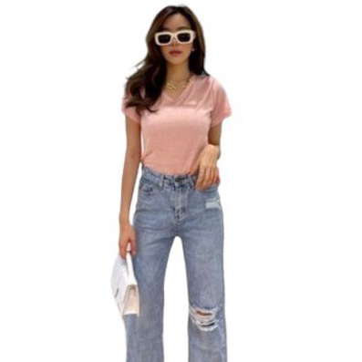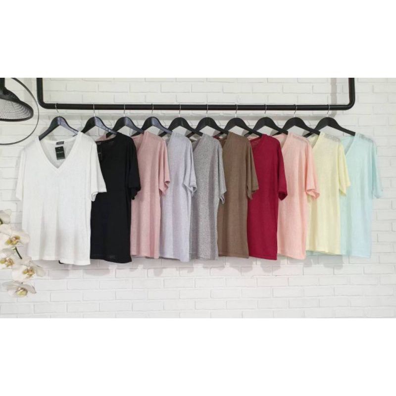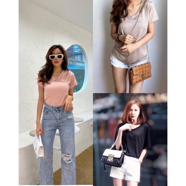 พร้อมส่งครบสีคะTOPSHOP💥เสื้อยืดคอวีเว้า ผ้าสลาฟบาง เหมาะกับอากาศร้อนมากๆ💥สาวอวบใส่ได้คะ