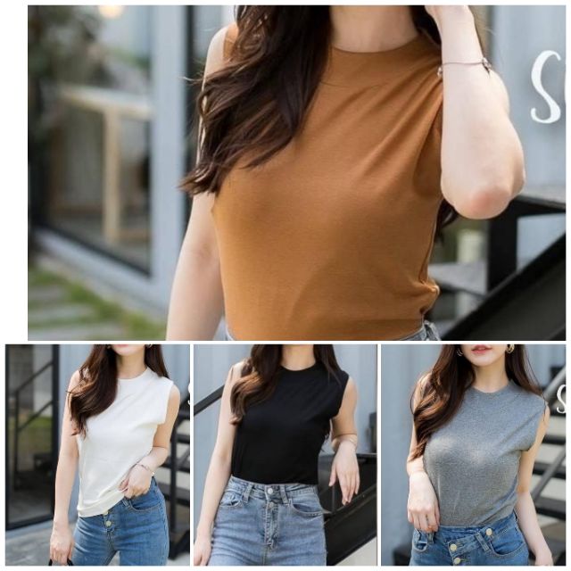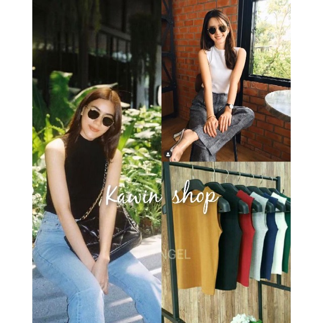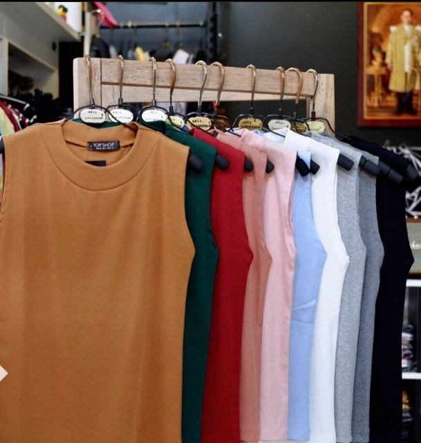 พร้อมส่ง🌸#Topshop เสื้อแขนกุดคอปีน ทรงพอดีตัว ผ้าcotton ใส่สบาย🌸งานป้าย
