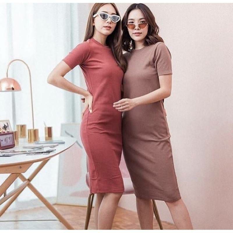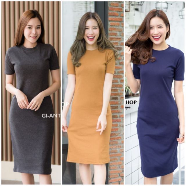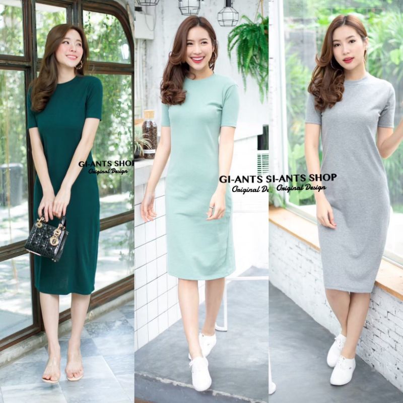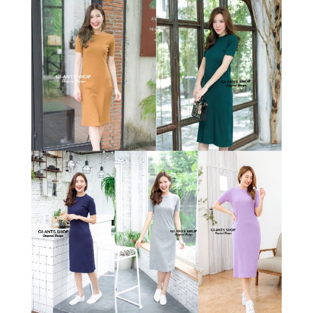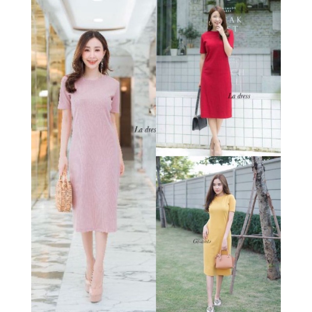 La dress🍒 เดรสยาวคอกลม ผ้าร่องทรงสวย ใส่สบาย ผ้าคอตตอนร่อง🍒งานป้าย