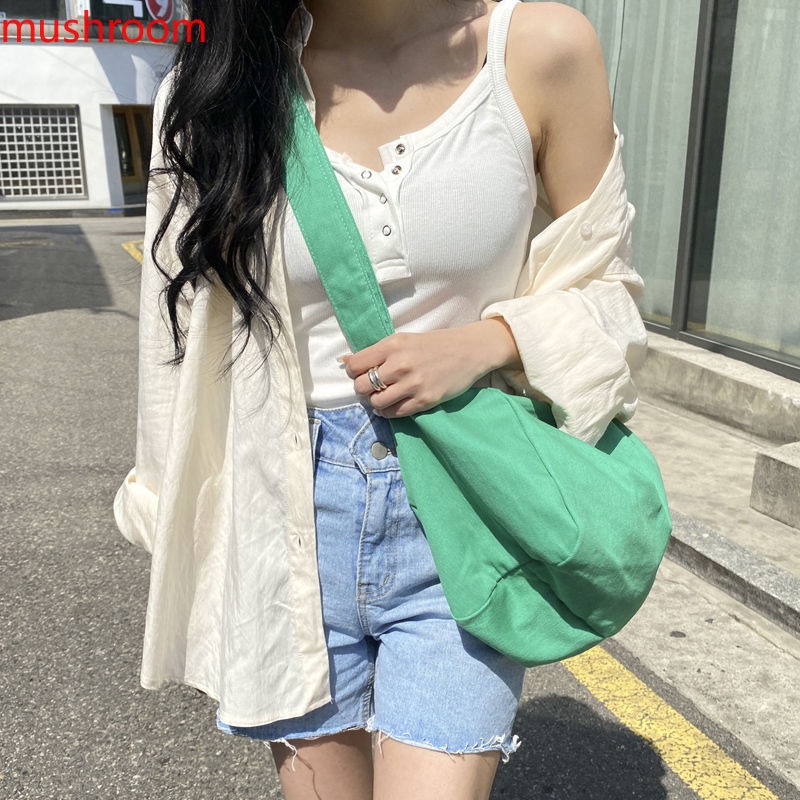 【mushroom】กระเป๋าผ้าสะพายไหล่ กระเป๋า messenger แฟชั่นสตรี