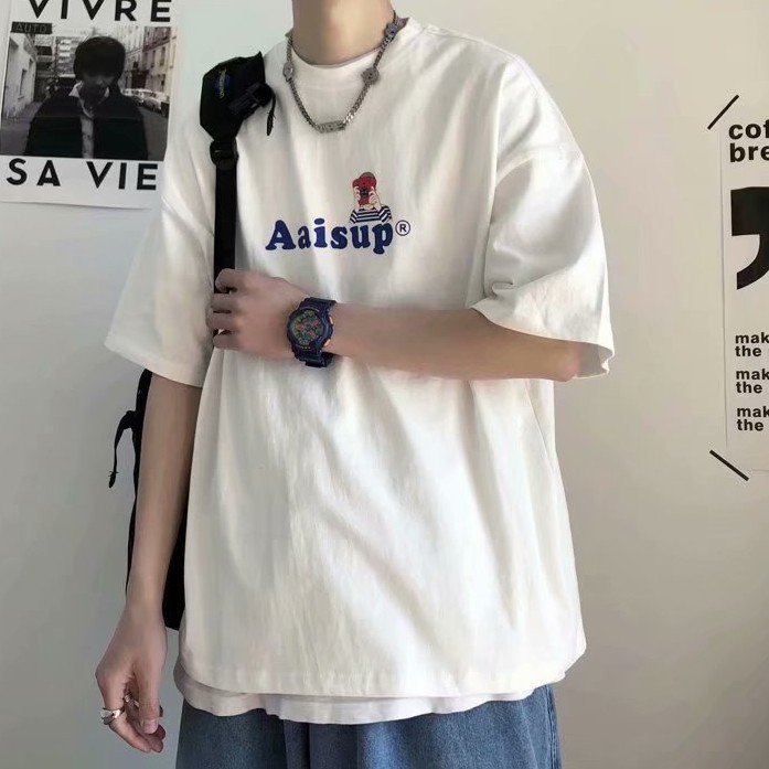 เสื้อยืดลำลอง แขนสั้น พิมพ์ลายตัวอักษร ทรงหลวม ขนาดใหญ่ S-5XL