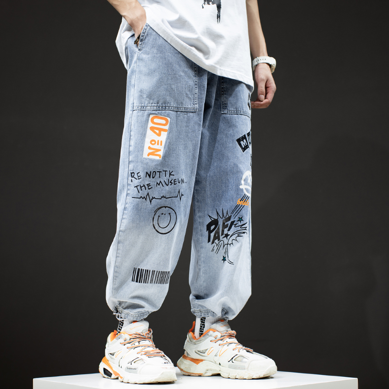 กางเกงยีนขายาว ทรงหลวม เย็บปักลาย สำหรับผู้ชาย ไซซ์ M-3XL