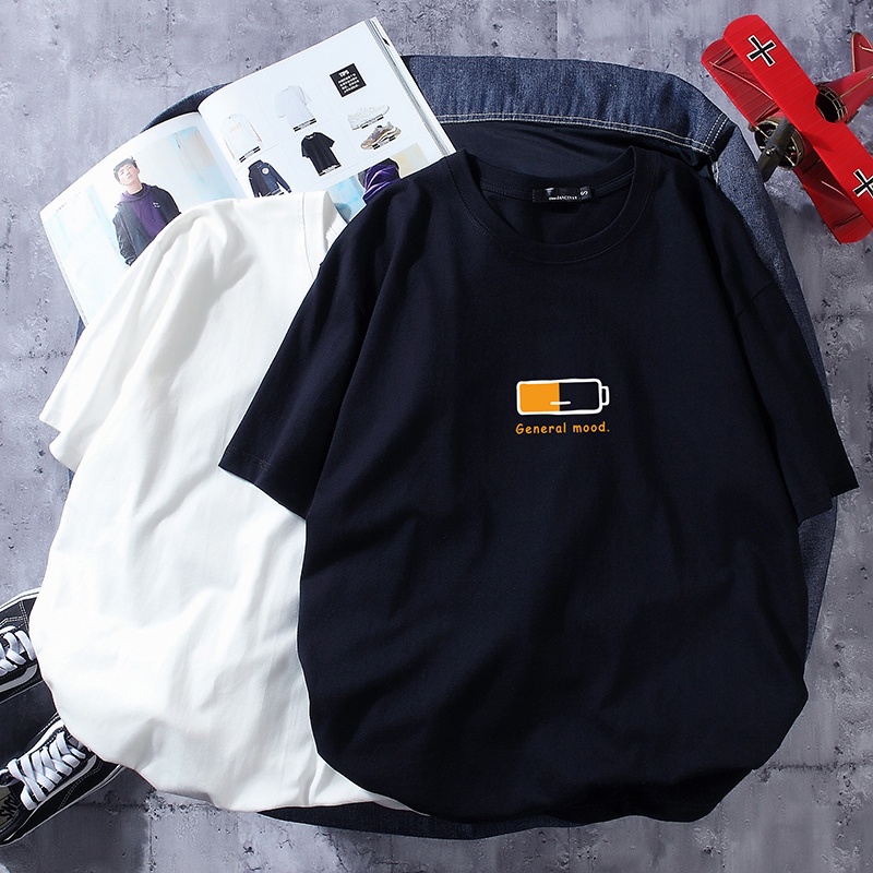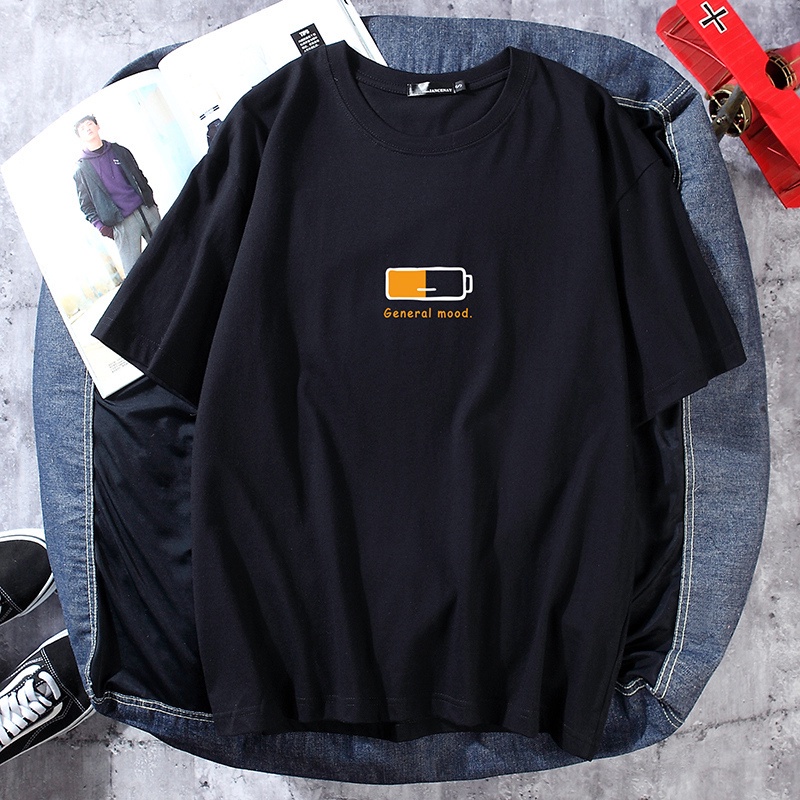 เสื้อยืด แขนสั้น ลายแบตเตอรี่ ขนาดใหญ่ สไตล์ลำลอง ฤดูร้อน อินเทรนด์ แฟชั่นสำหรับผู้ชาย【M-8XL】