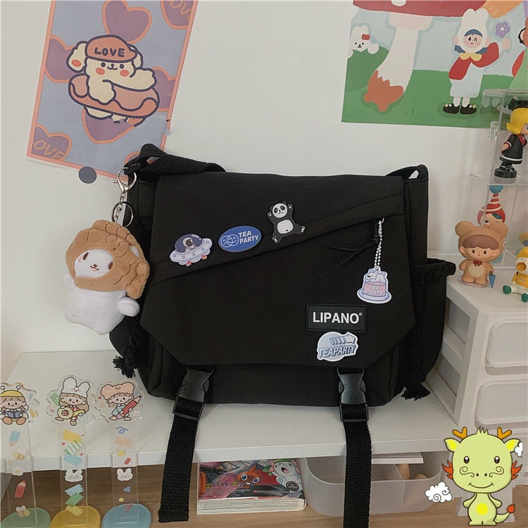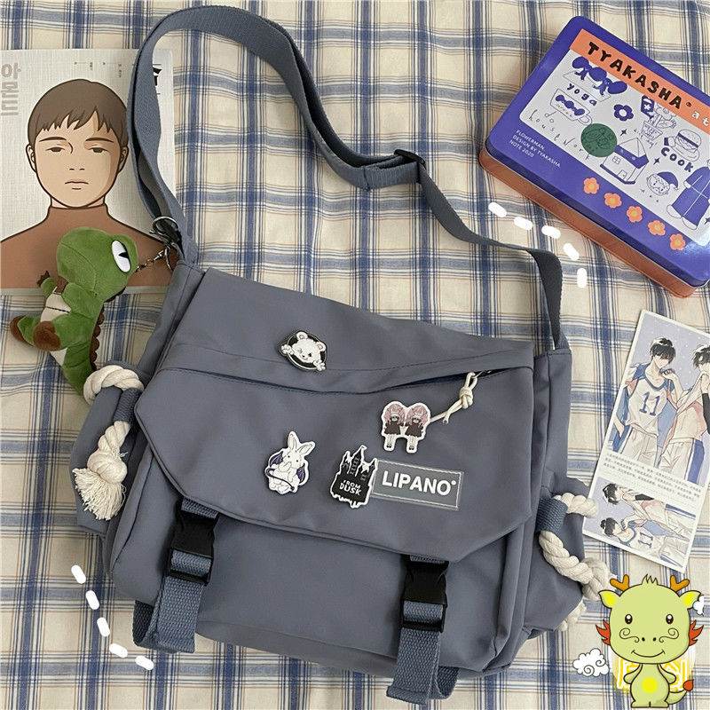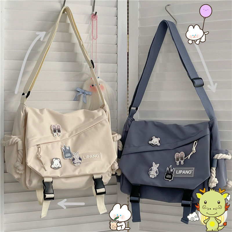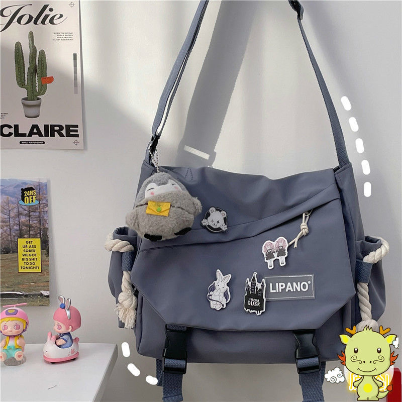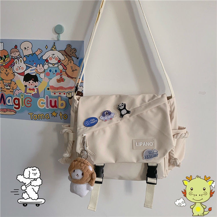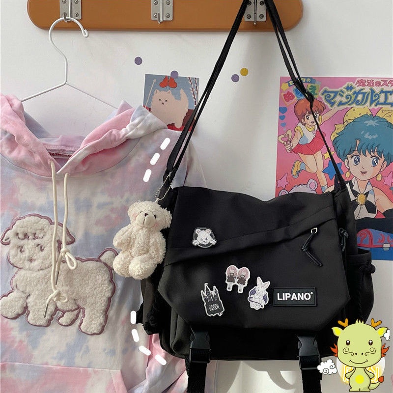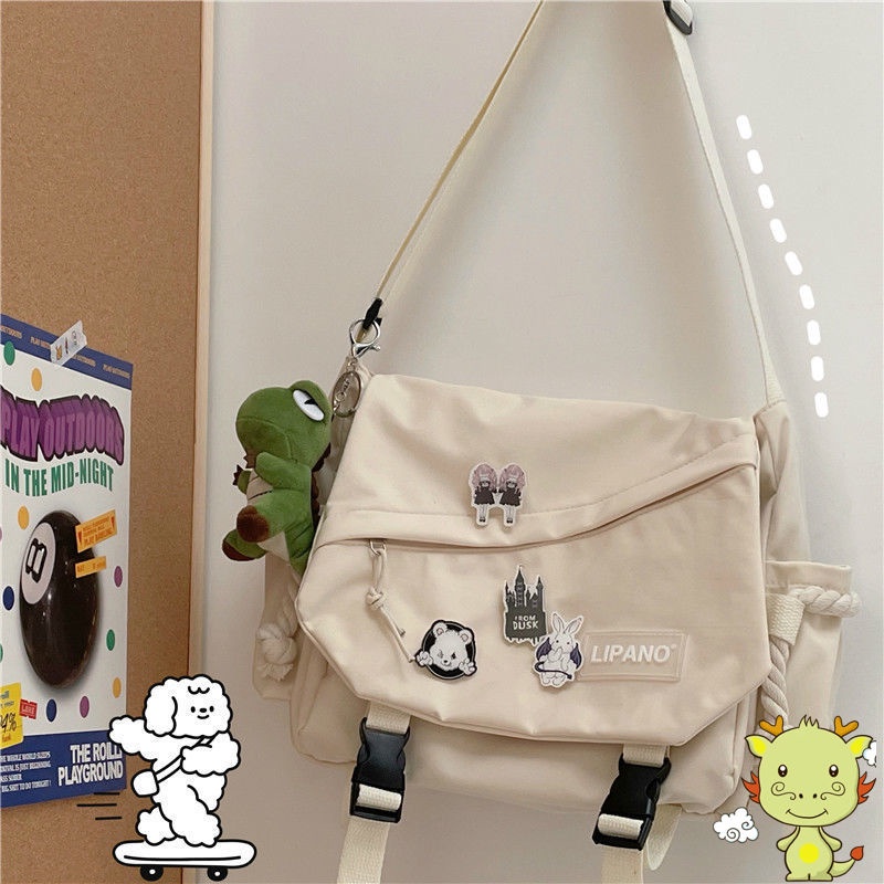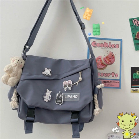 กระเป๋าผ้าสะพายข้าง,กระเป๋าสะพาย ไนลอน ความจุขนาดใหญ่ สไตล์ฮาราจูกุ สไตล์เกาหลีใต้ กระเป๋าผู้หญิง