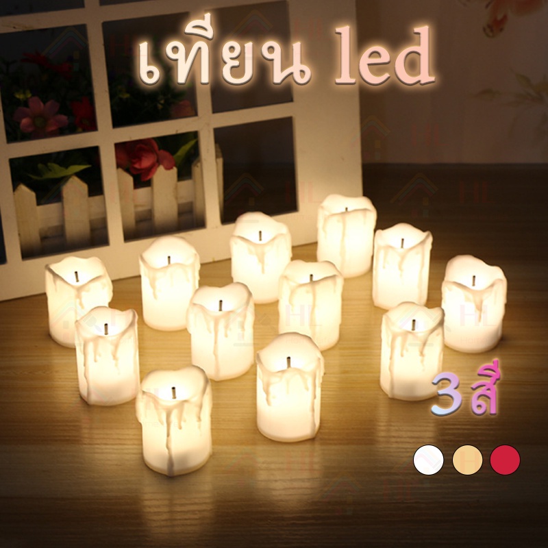 เทียน led เทียนปลอม 3สี เทียนตกแต่ง เปลวไฟพลิ้วไหวสะเหมือนจริง