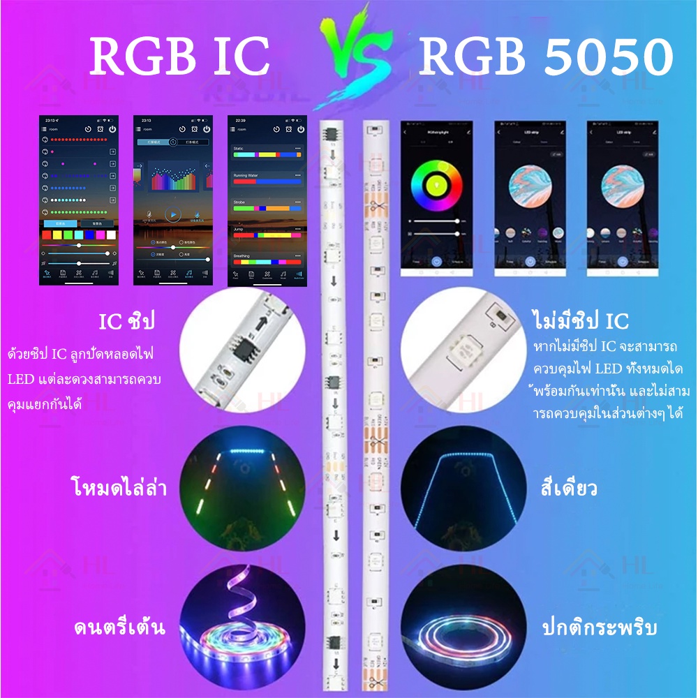 ไฟแต่งห้อง 🌈โหมดสายรุ้ง🌈 RGB-IC ไฟดาวตก ไฟรูปแบบการไหล ไฟ RGB ไฟติดห้อง ไฟ LED แบบเส้น 5m 10m 15m 20m ws2811 ws2812b การซิงโครไนซ์เพลงการไล่ระดับสีที่มีสีสัน