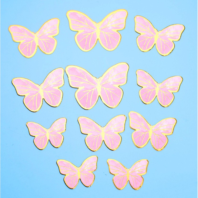 11 ชิ้น/เซ็ตสีชมพู Bronzing ผีเสื้อเค้ก Topper 3D ผีเสื้อตกแต่งงานเลี้ยงวันเกิดงานแต่งงานเค้กตกแต่งสาวและสุภาพสตรีเค้กวันเกิด Topper