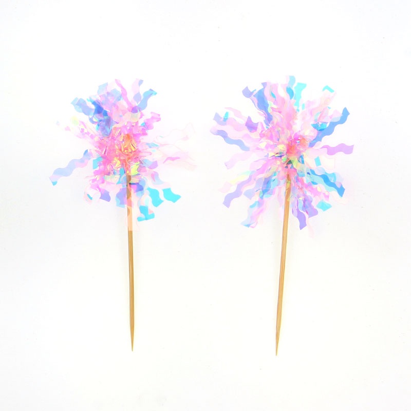 ตกแต่งเค้กฝนผ้าไหมหมวกด้านบนเกาหลีอินลมที่มีสีสันปลั๊กอินสุขสันต์วันเกิดอบเค้กหมวกด้านบน