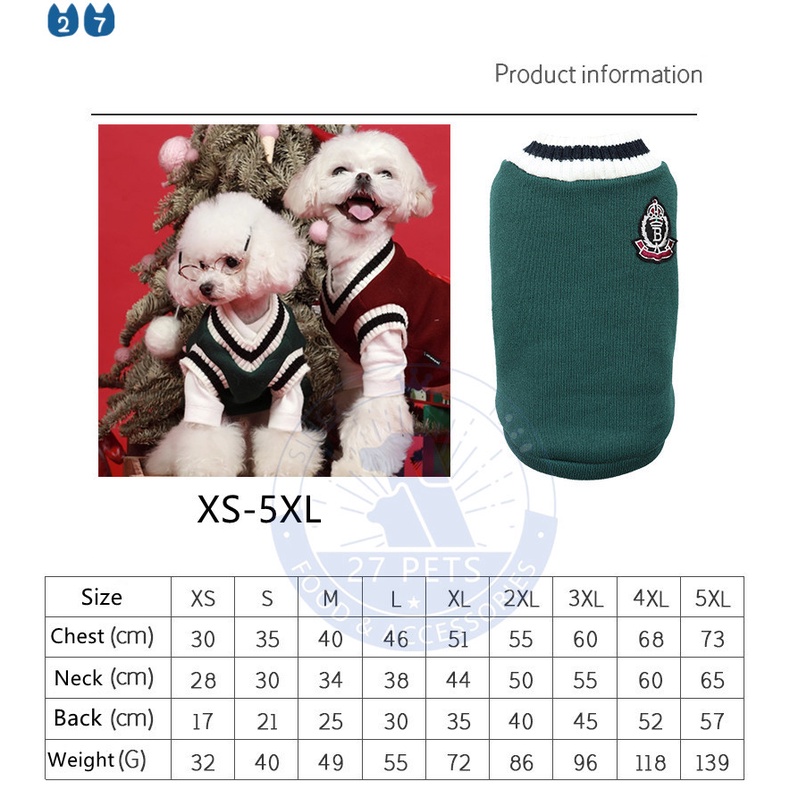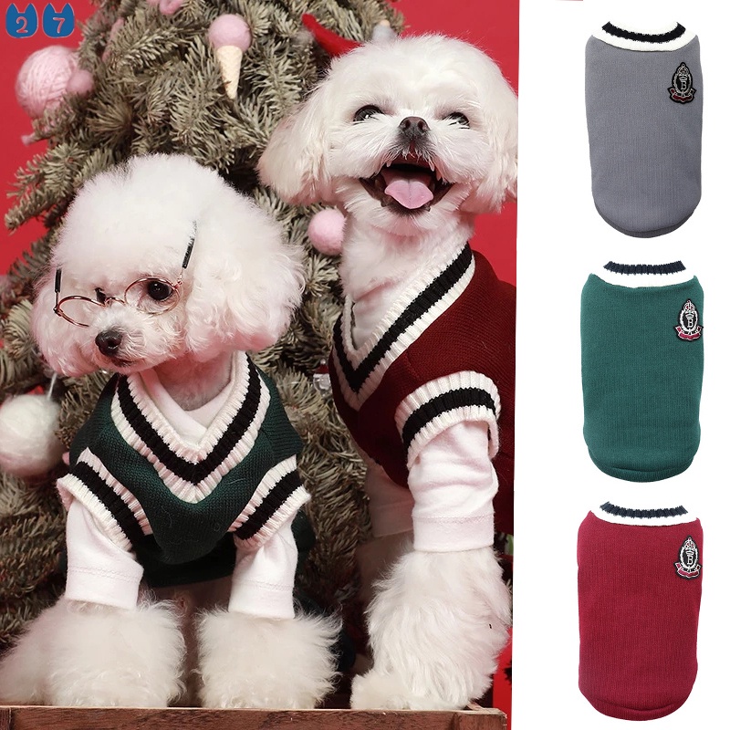 『27Pets』เสื้อสเวตเตอร์ แขนกุด คอวี พิมพ์ลาย ให้ความอบอุ่น สำหรับสัตว์เลี้ยง สุนัข ขนาด XS-5XL