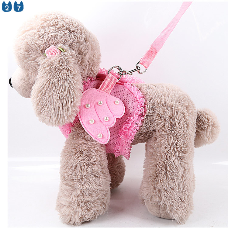 ชุดสายจูง และเสื้อกั๊ก ประดับไข่มุก สามารถปรับได้ สไตล์เจ้าหญิง สําหรับสัตว์เลี้ยง สุนัข แมว