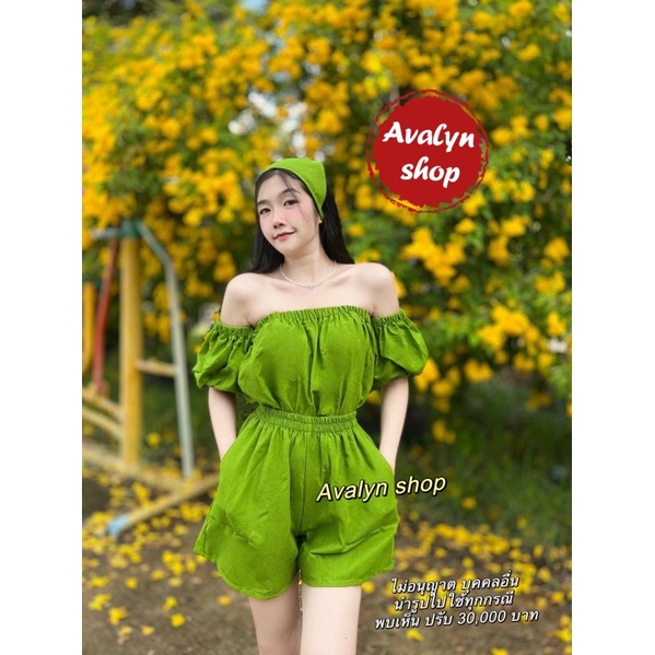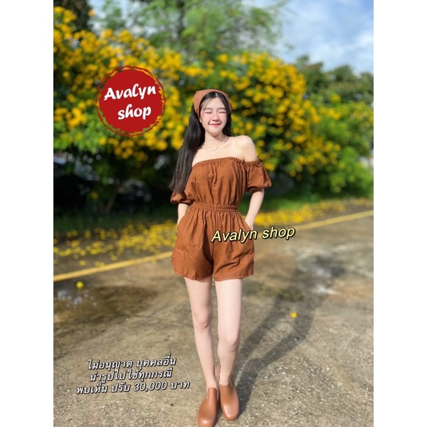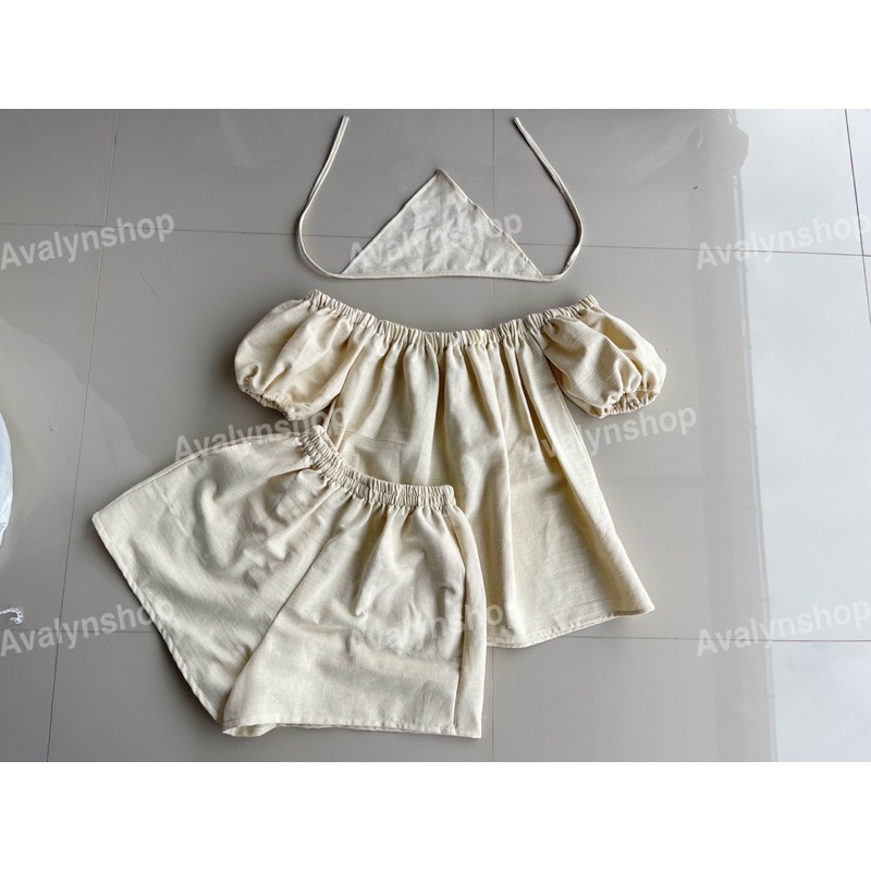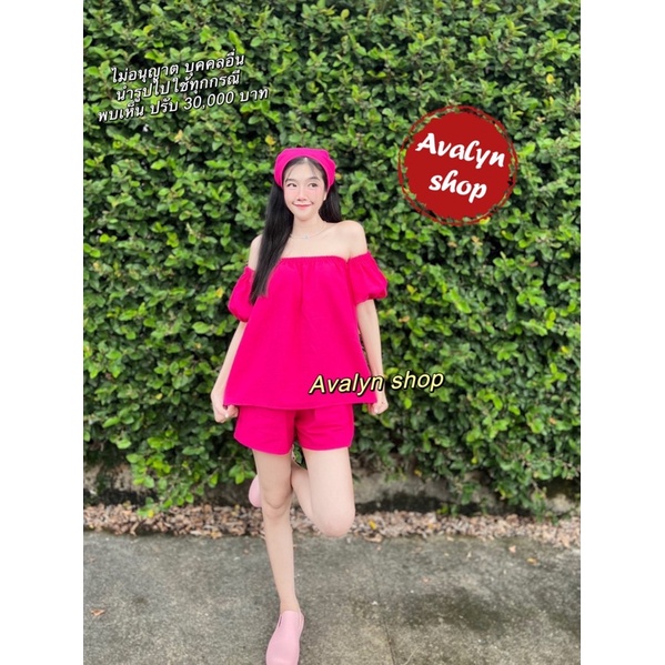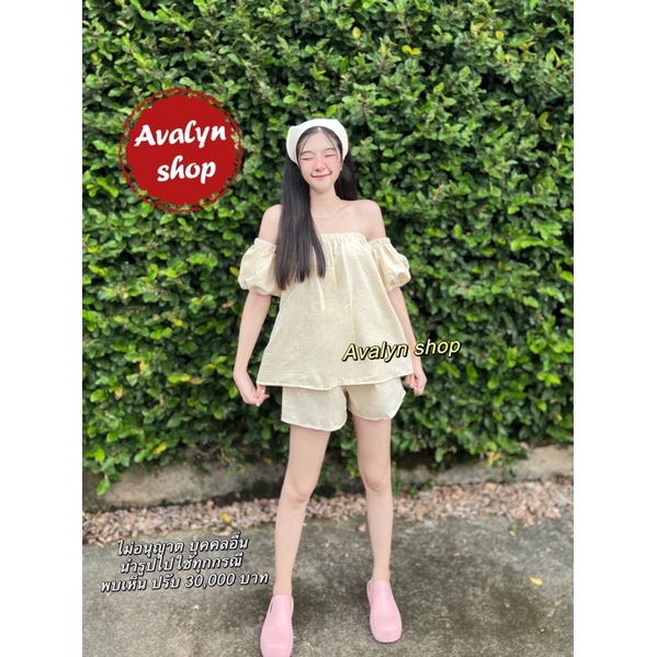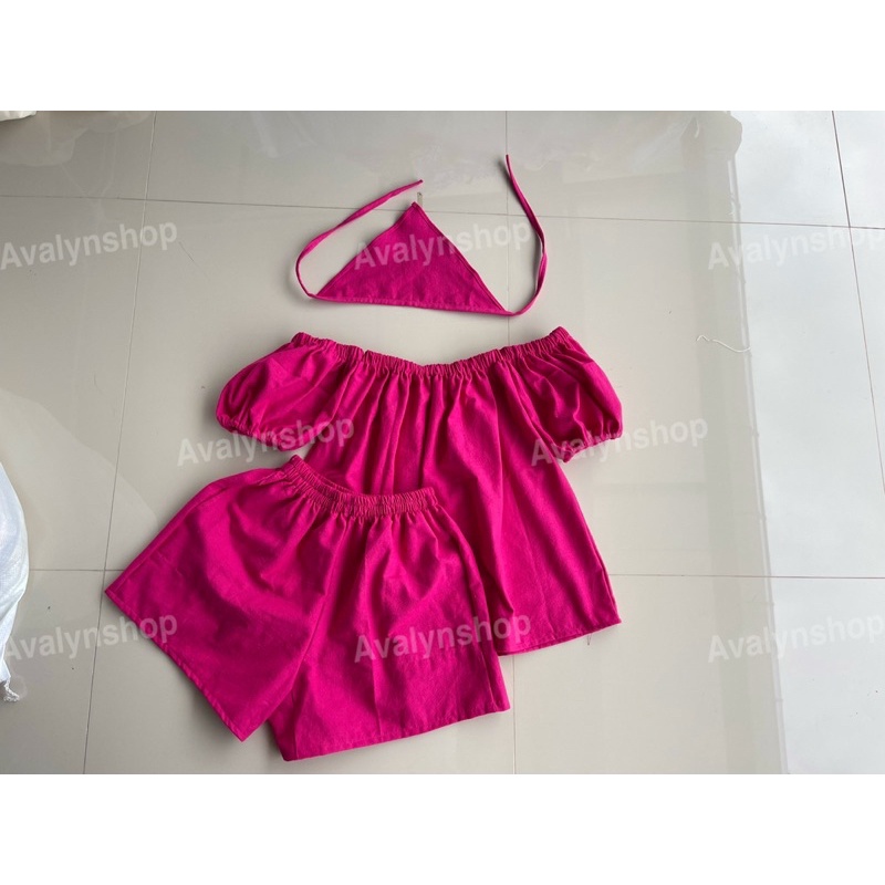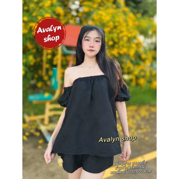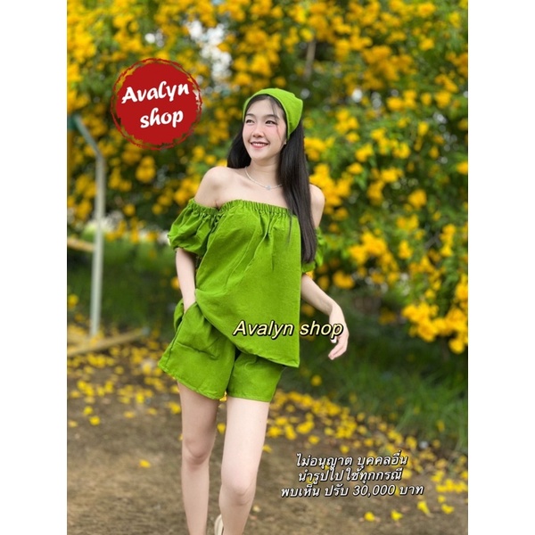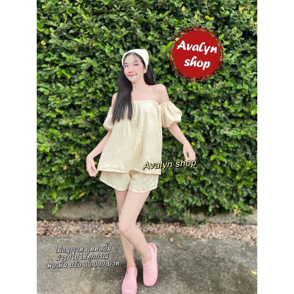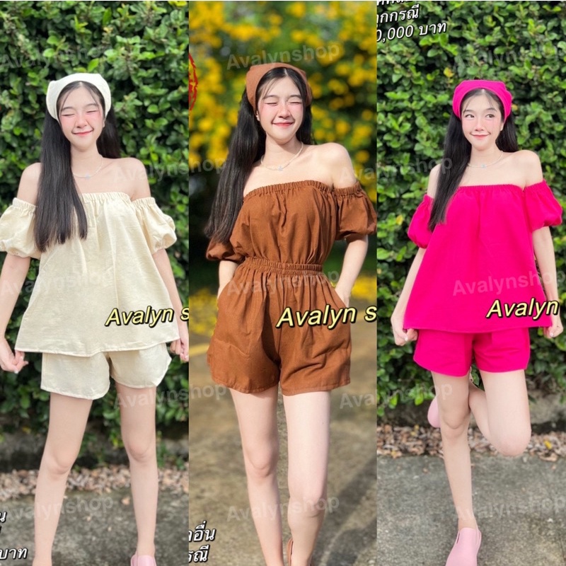 🍭ชุดเซต เสื้อกางเกงขาสั้น ปาดไหล่ (แถมผ้าโพกผม) ชุดเซตน่ารักๆ พร้อมส่ง