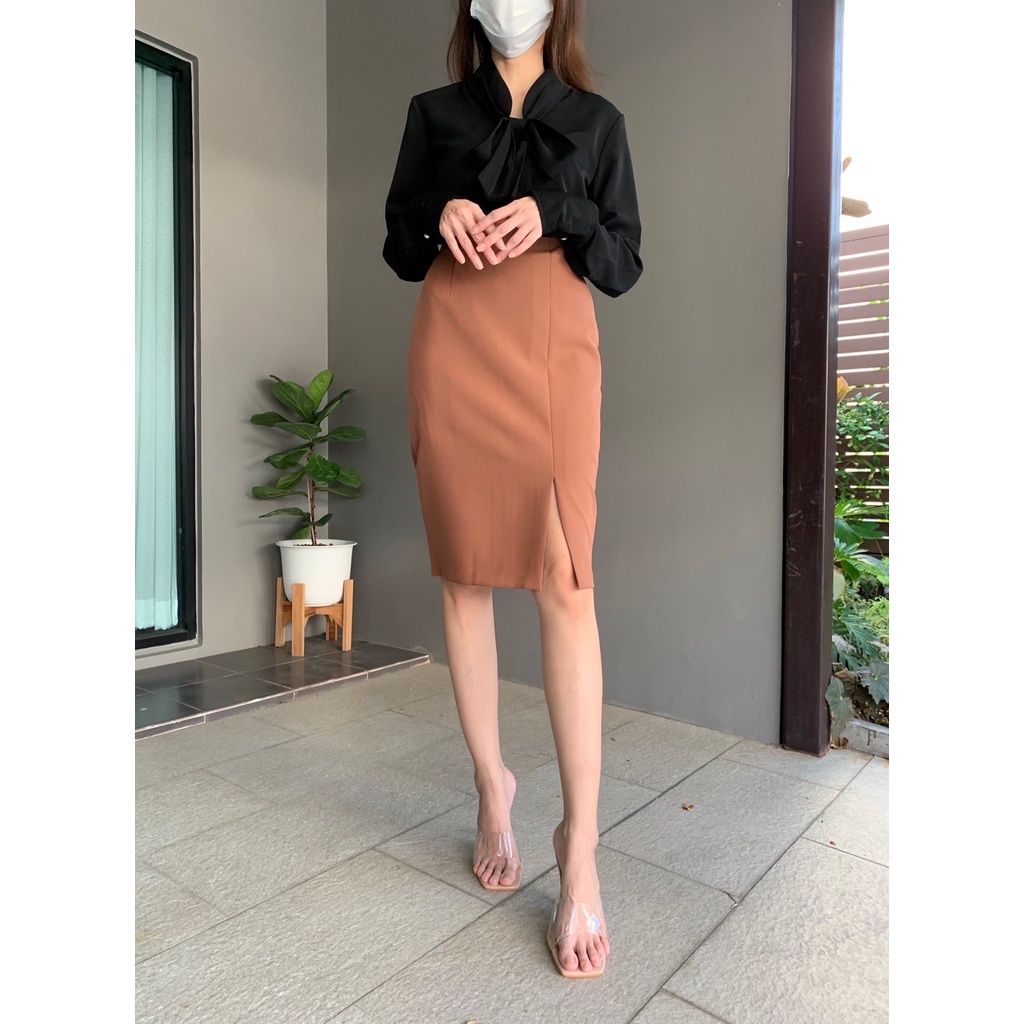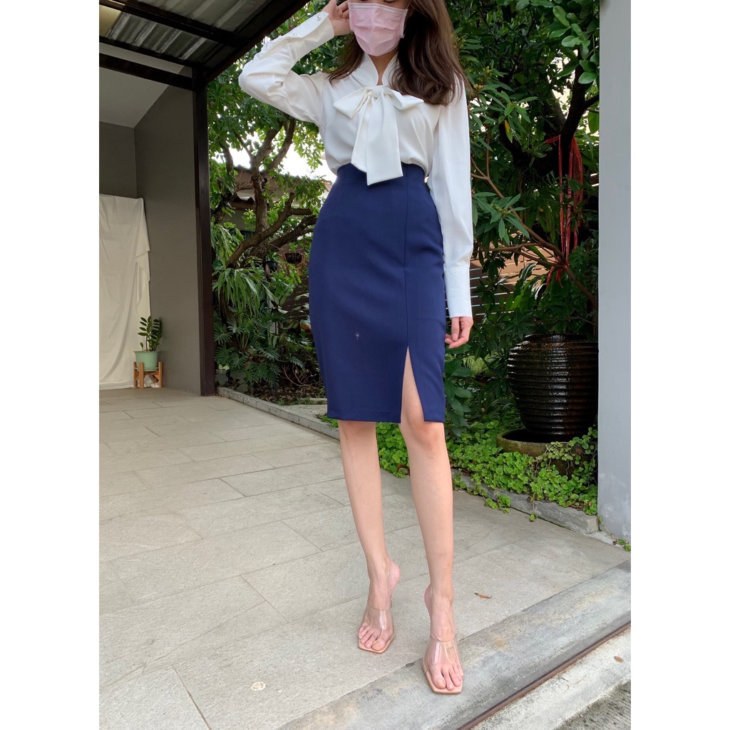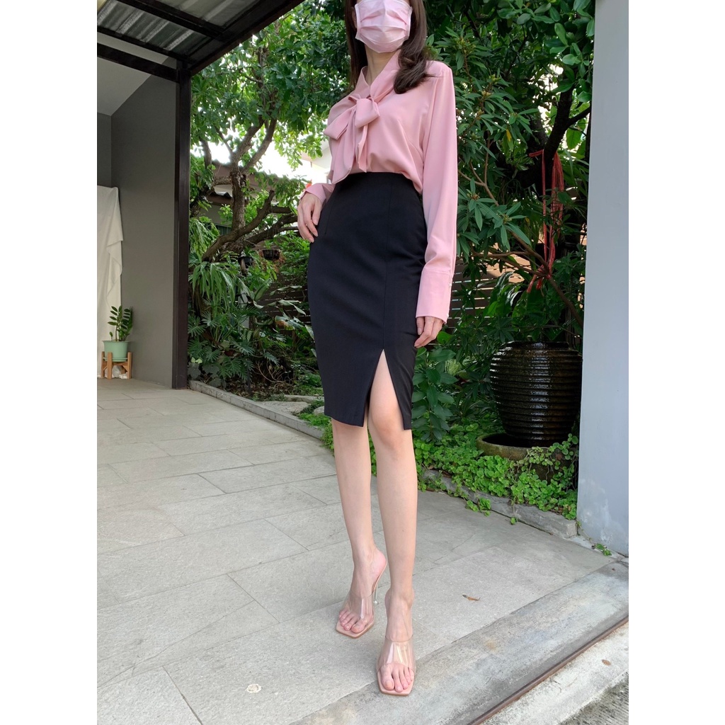 กระโปรงผ่าหน้าขา รุ่น Demi เอวปีน