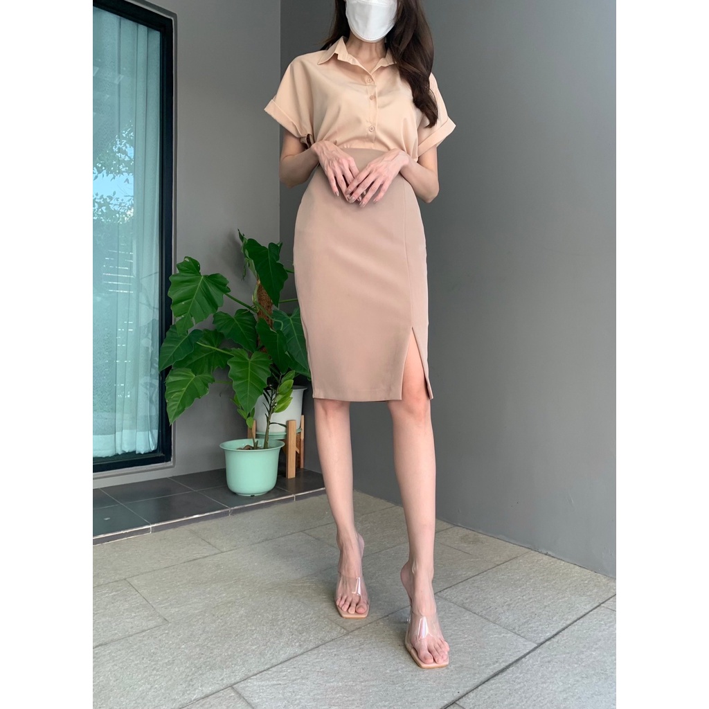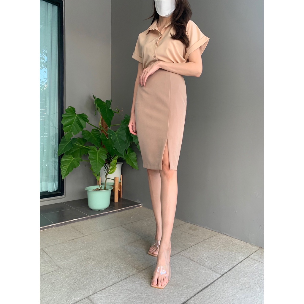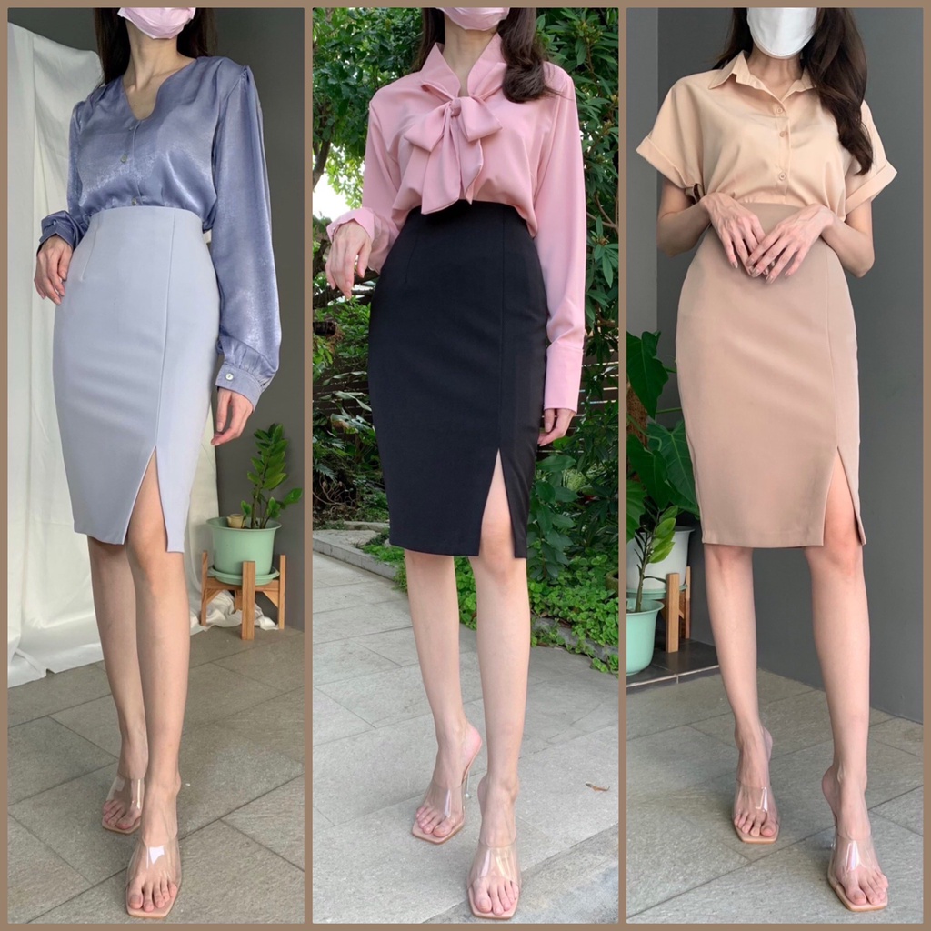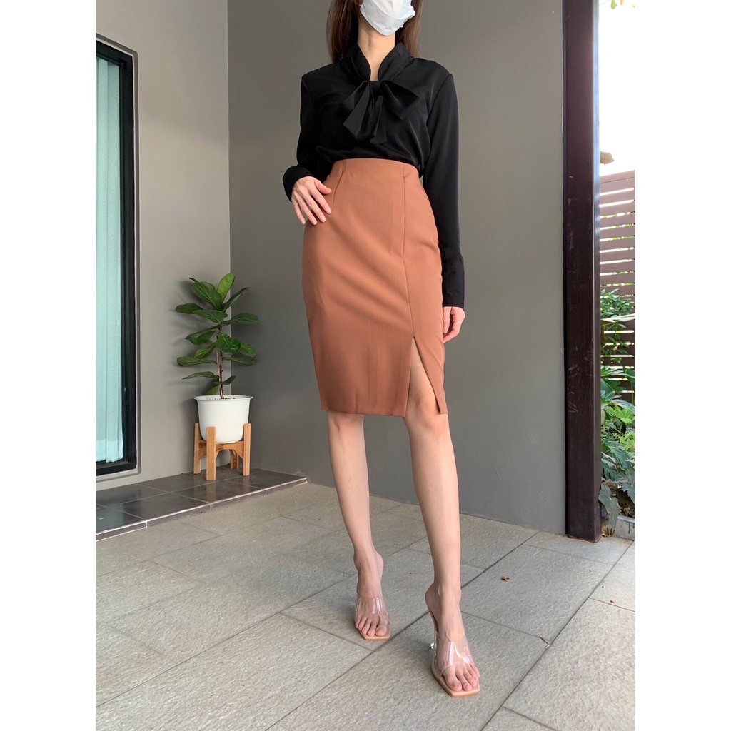 กระโปรงผ่าหน้าขา รุ่น Demi เอวปีน