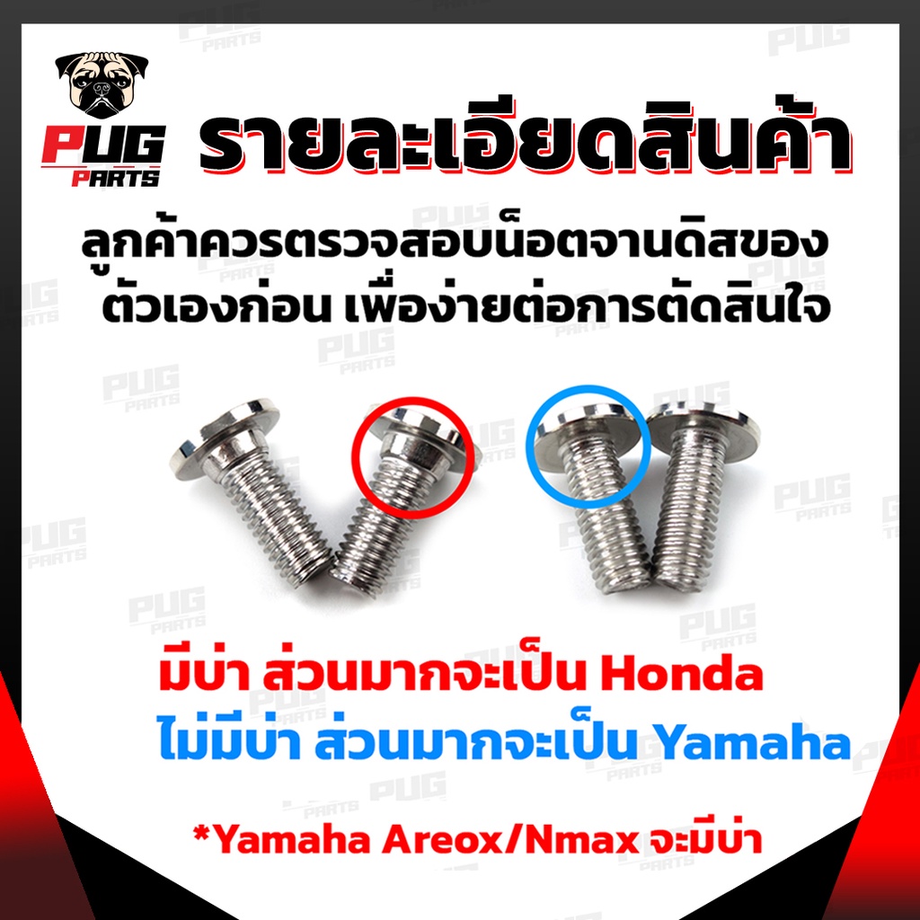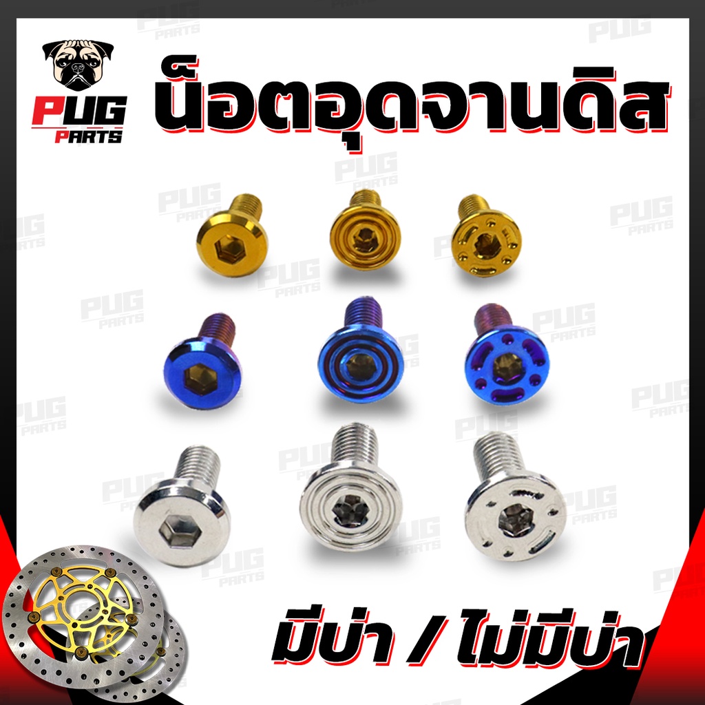 น็อตจานดิส มีบ่า/ไม่มีบ่า "ราคาต่อตัว" (หัว ก้นหอย/หยดน้ำ/หน้าเรียบ เลส ทอง ไทเท) น๊อตจานดิส อุดจานดิส น็อตสแตนเลสแท้