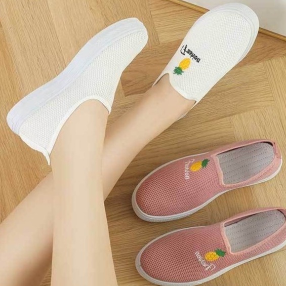 (S-1037) พร้อมส่งในไทย 🚚 สับปะรด รองเท้าเป็นทรงดี ยืดหยุ่นได้ดี รองเท้าผ้า ผู้หญิง แฟชั่น