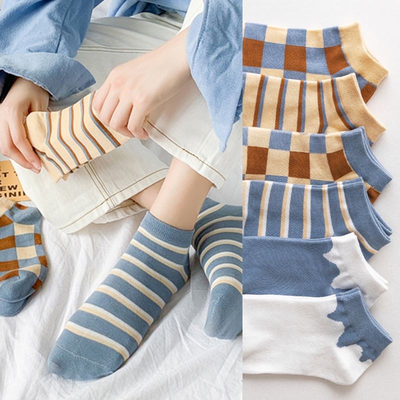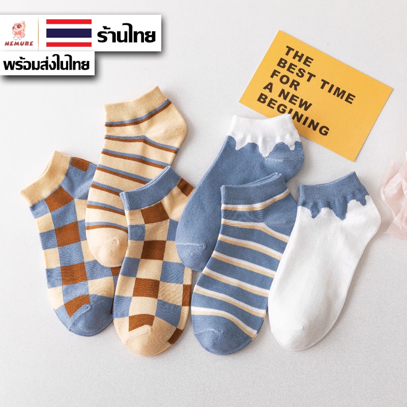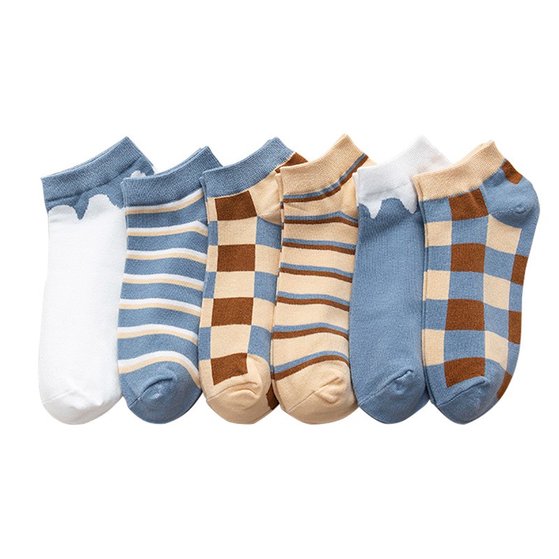 (W-045) ถุงเท้า 6 ลาย สไตล์คลาสสิก ถุงเท้าข้อสั้น แฟชั่น ลายน่ารัก เนื้อผ้านุ่ม