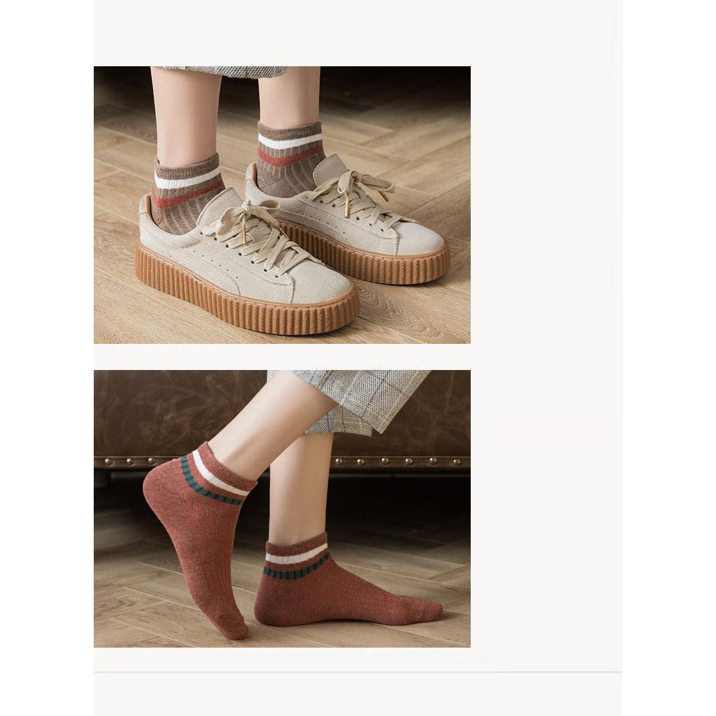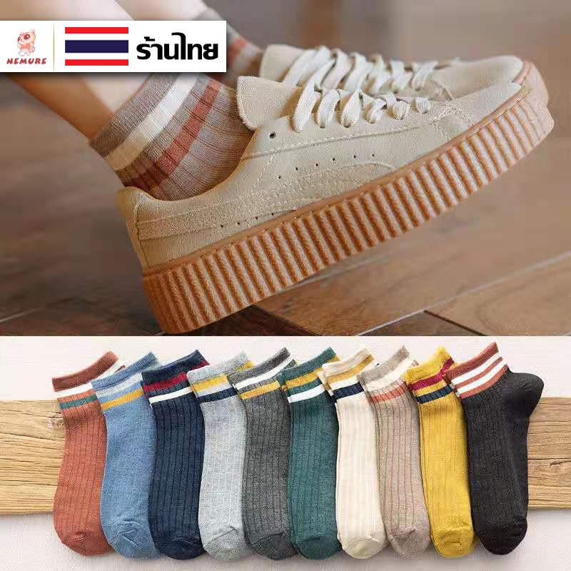(W-091) ซื้อขั้นต่ำ 2 คู่ ถุงเท้าสีพื้น 10สี ข้อคาดสี ถุงเท้าข้อสั้น แฟชั่น ลายน่ารักเนื้อผ้านุ่ม