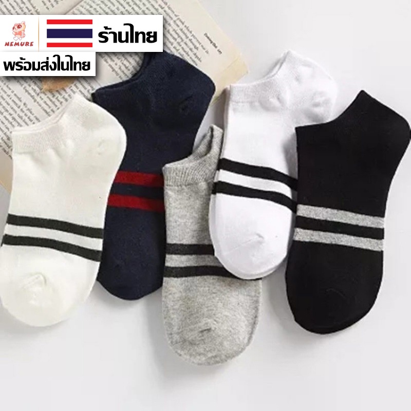 (W-036) ซื้อขั้นต่ำ 2 คู่ ถุงเท้าสีพื้นคาดสี 5 แบบ ถุงเท้าแฟชั่น ถุงเท้าข้อสั้น ลายน่ารักเนื้อผ้านุ่ม