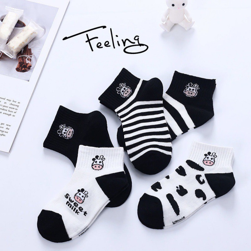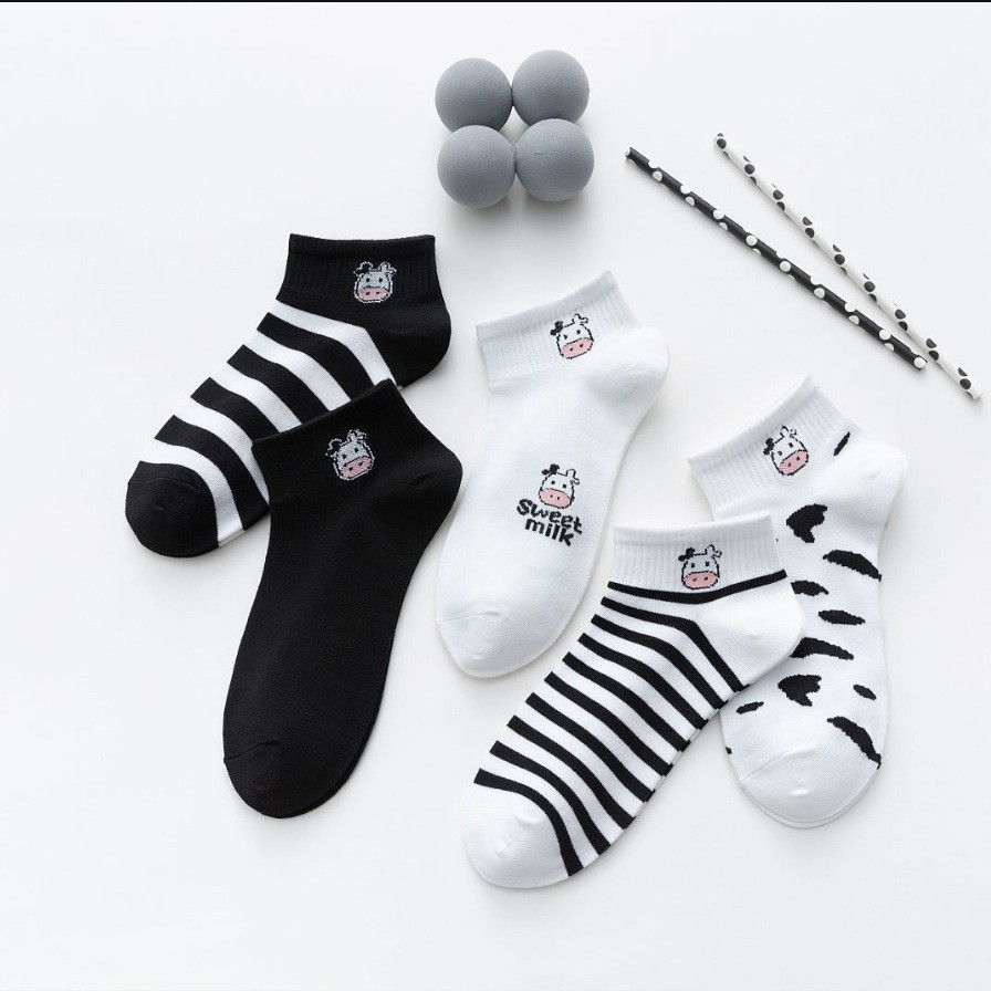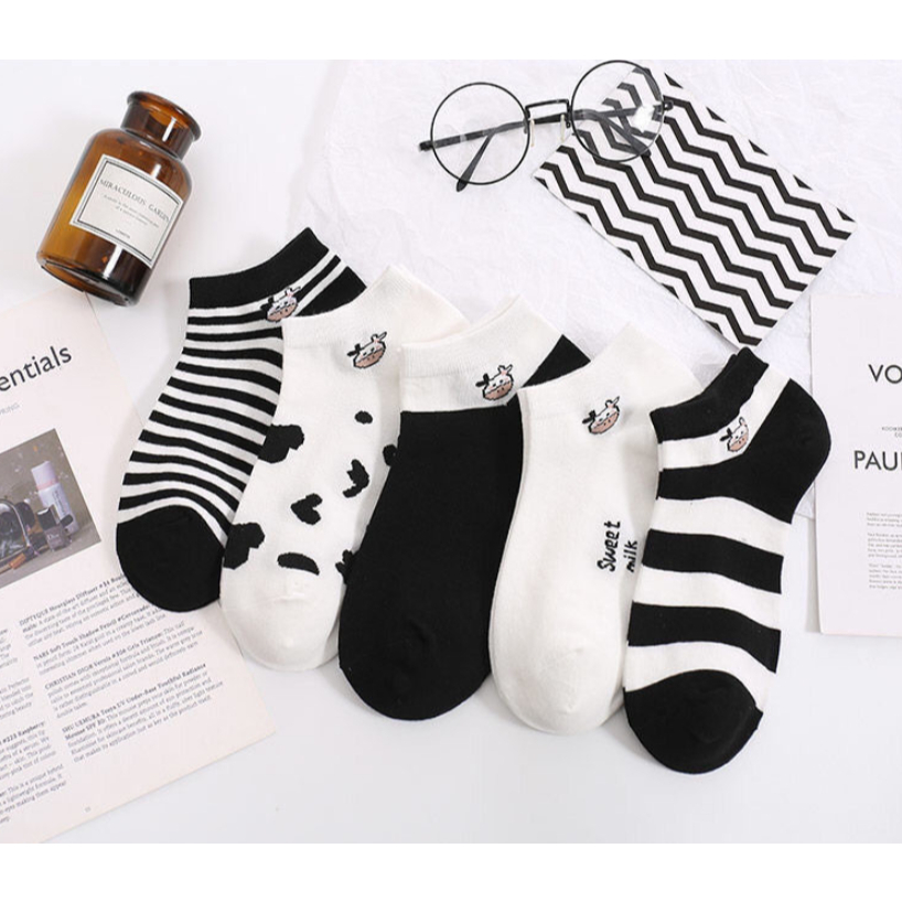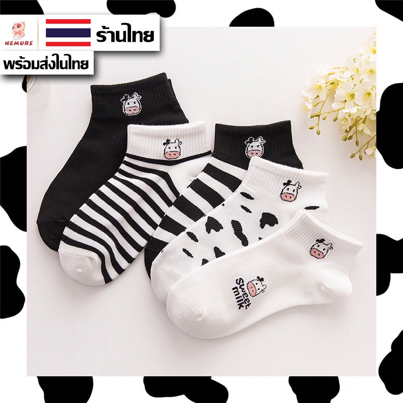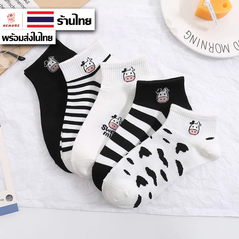 (W-067) ถุงเท้าน้องวัว 5 ลาย ถุงเท้าข้อสั้น ถุงเท้าแฟชั่น ลายน่ารัก เนื้อผ้านุ่ม