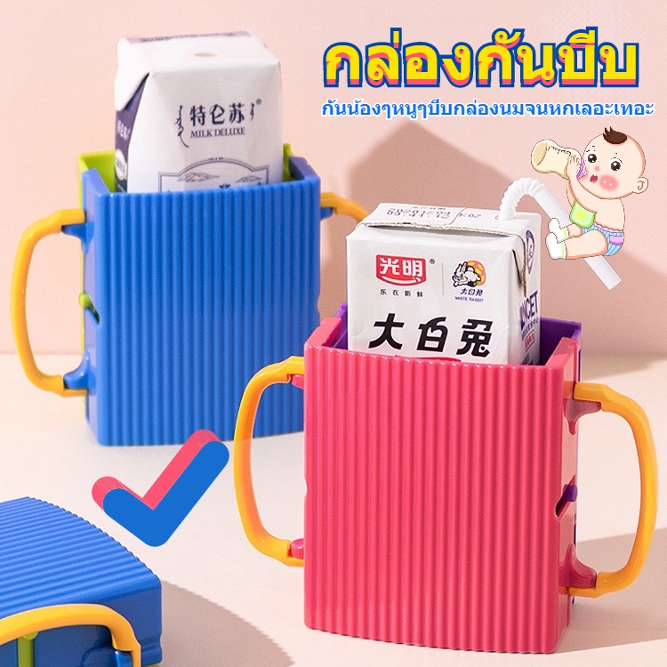 พร้อมส่ง!!! กล่องกันบีบ ที่จับกล่องนม ปรับขนาดได้ กันน้องๆหนูๆบีบกล่องนมจนหกเลอะเทอะ