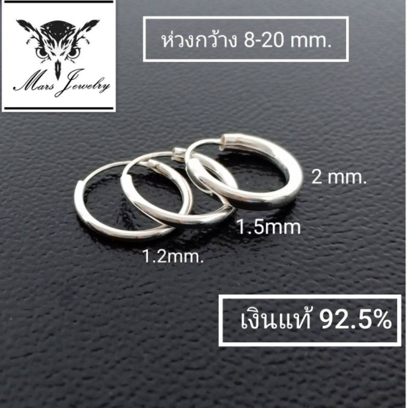 💥(เงินแท้92.5%)​ต่างหูเงินแท้หนา​1.2,1.5,2,mm. กว้าง​​7-32mm.วัดความกว้างวงใน (ราคา 1 คู่)