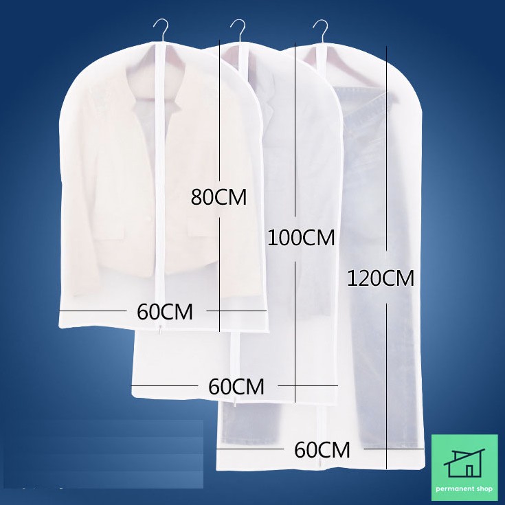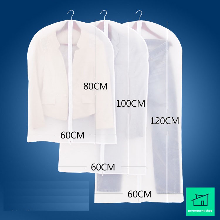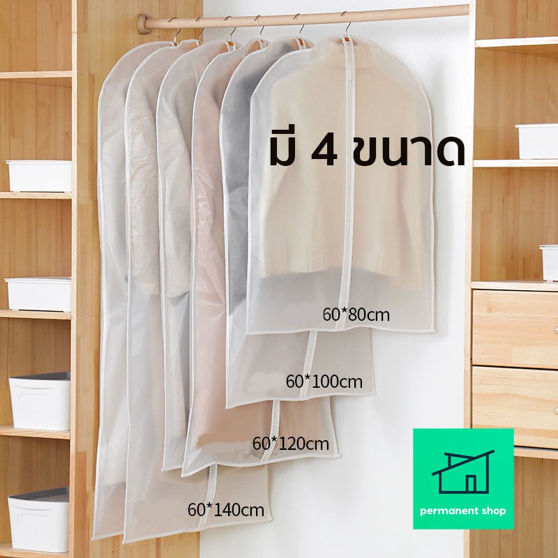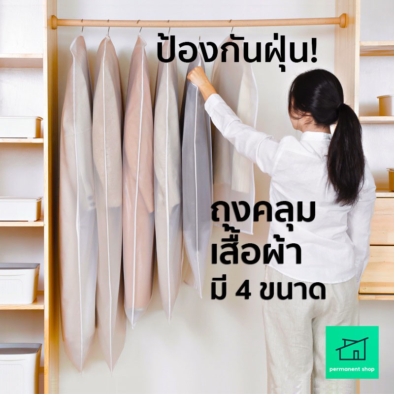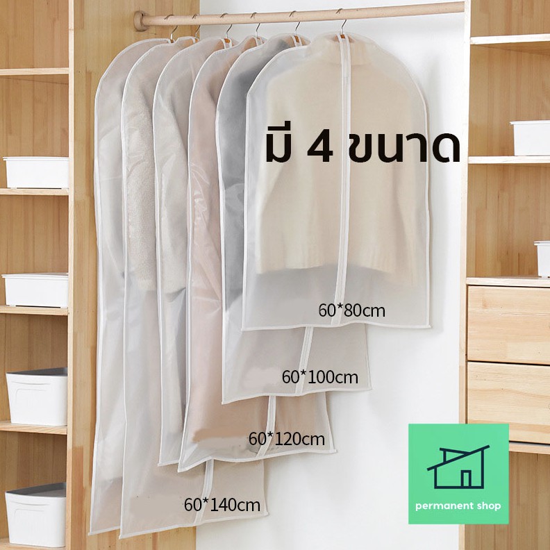 ถุงคลุมเสื้อ (สีขาวขุ่น) แบบซิป ที่ใส่สูท ป้องกันฝุ่นเกาะเสื้อผ้าที่เก็บไว้