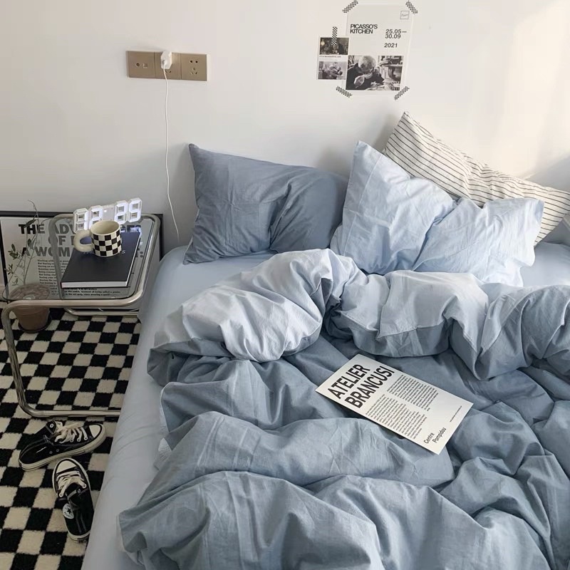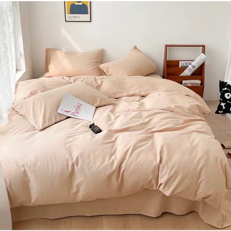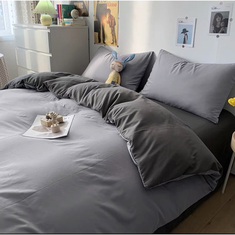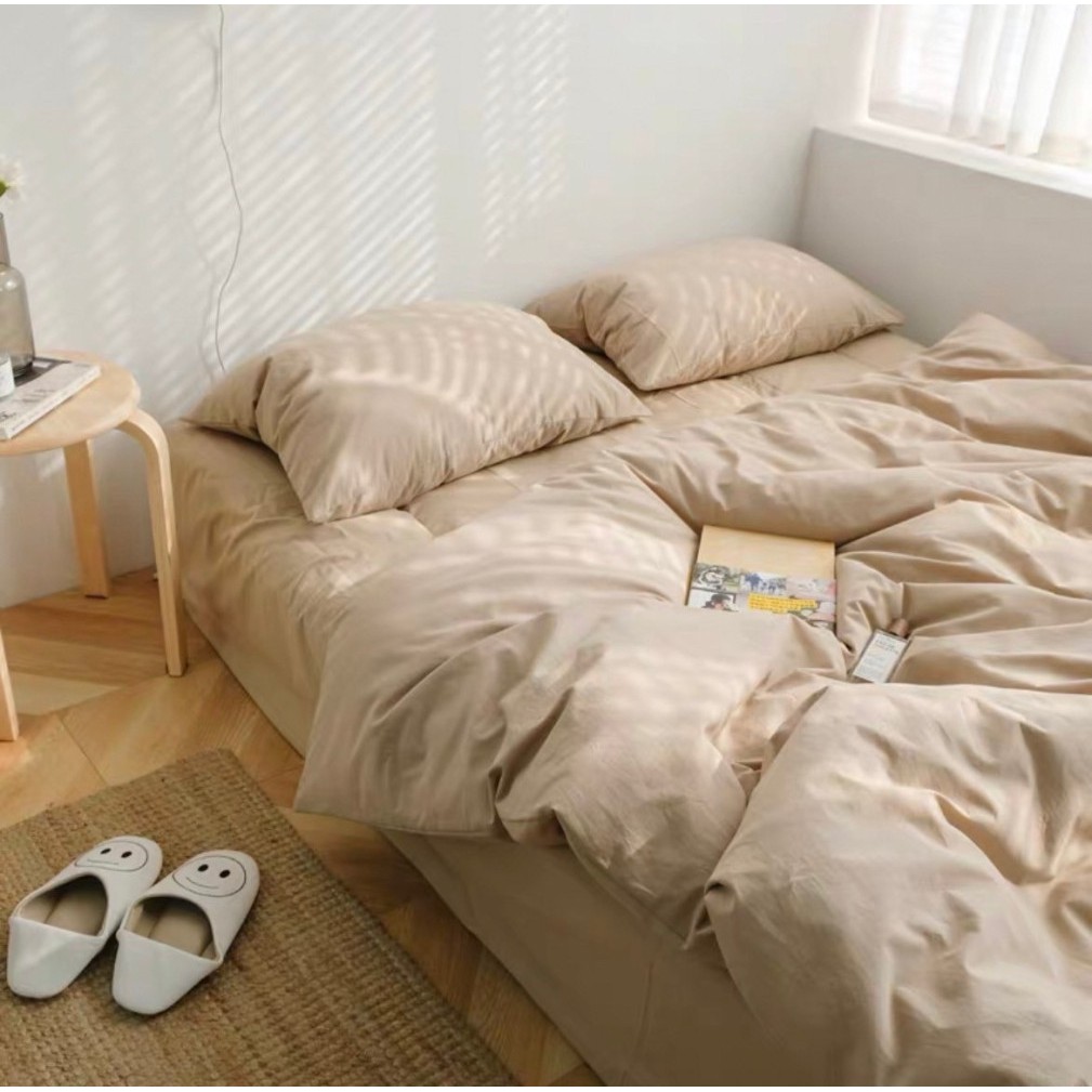ชุดผ้าปูที่นอนสีพื้น minimal ครบเซ็ต 6 ชิ้น/ ผ้าปูที่นอน ผ้านวม.ผ้าปูลายตาราง