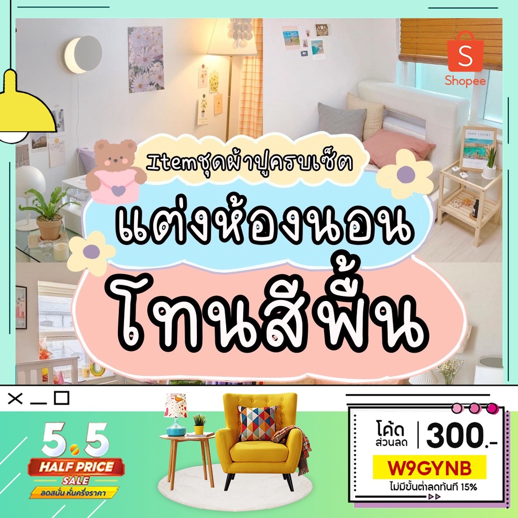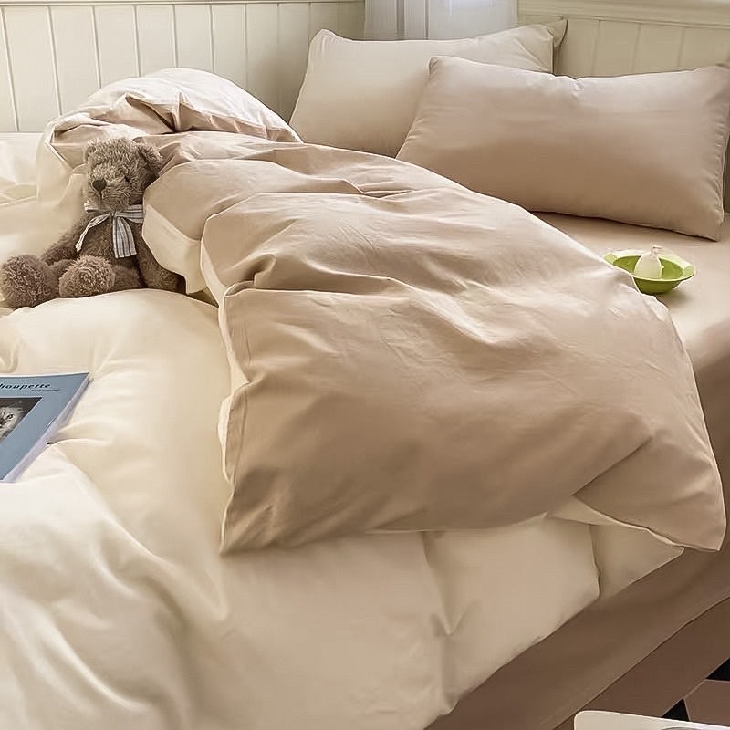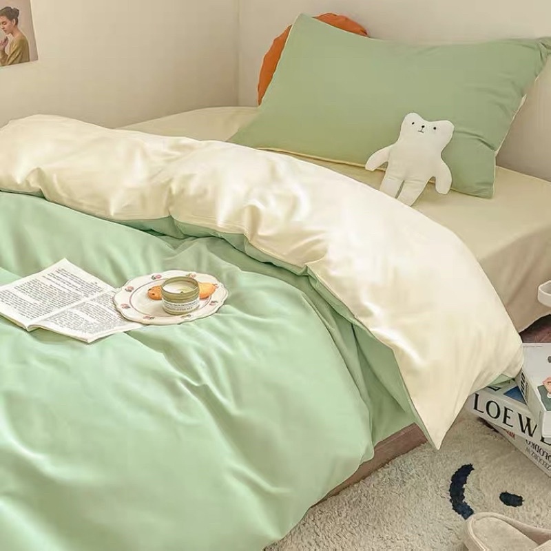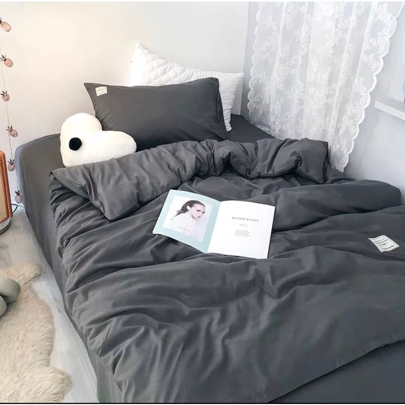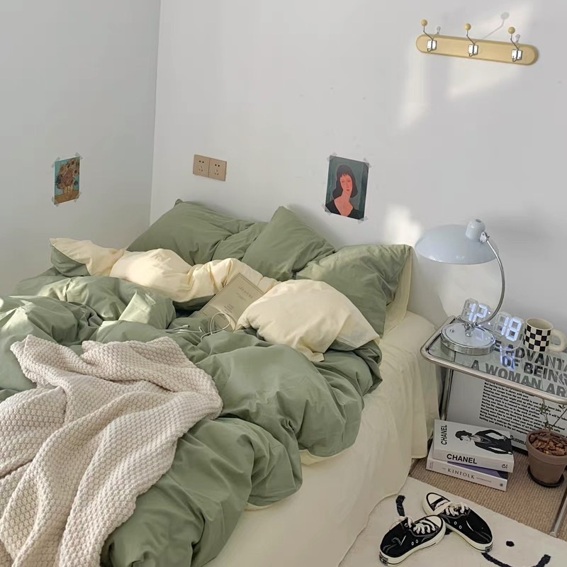 ชุดผ้าปูที่นอนสีพื้น minimal ครบเซ็ต 6 ชิ้น/ ผ้าปูที่นอน ผ้านวม.ผ้าปูลายตาราง
