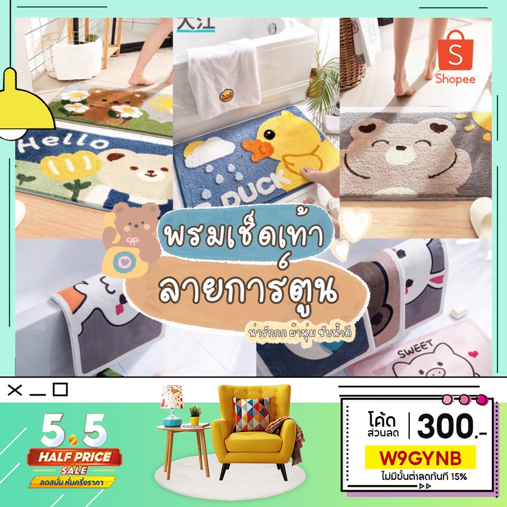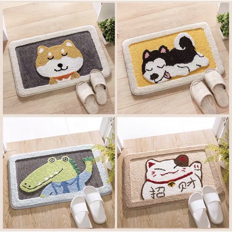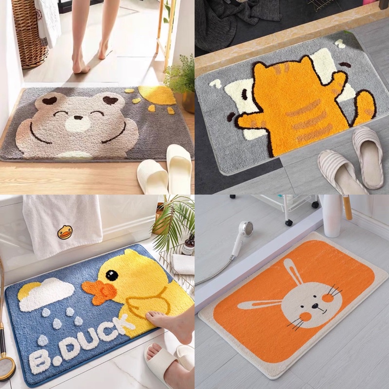 พรมเช็ดเท้า ลายการ์ตูนน่ารัก แผ่นปูพื้นดูดซับกันลื่นลายการ์ตูน คละลาย【40cm*60cm】