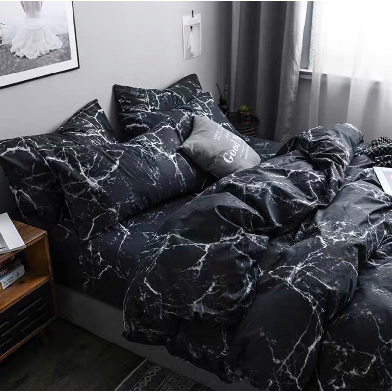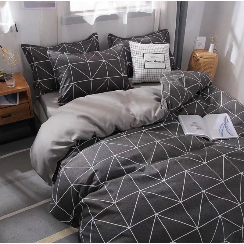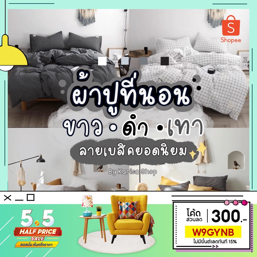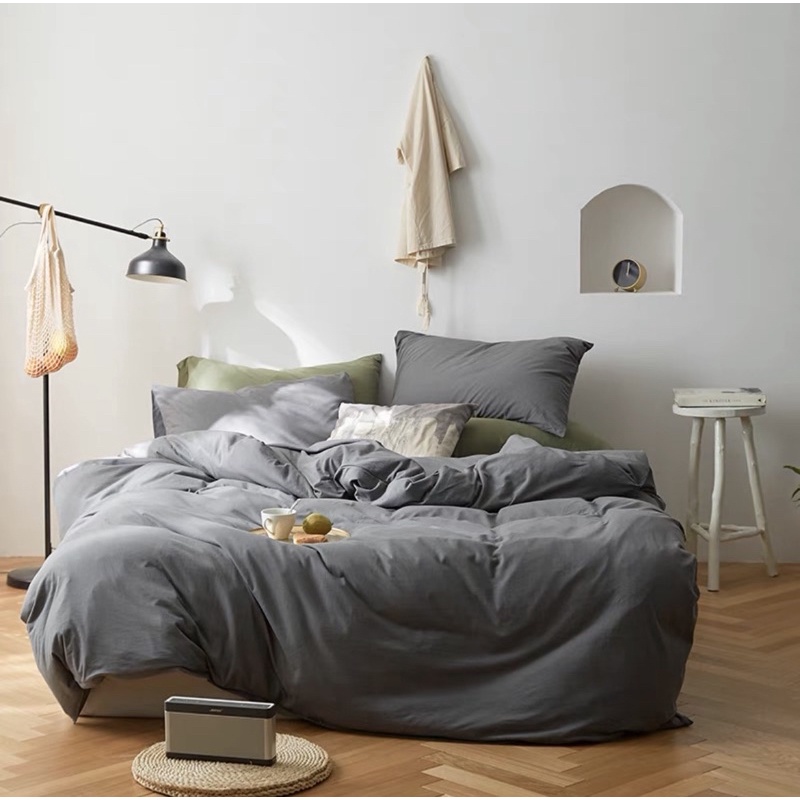 ชุดผ้าปูที่นอนสีพื้นขาว เทา ดำ (Black White Grey) ผ้าปูที่นอน.ผ้านวม.ชุดเครื่องนอน.ผ้าปู