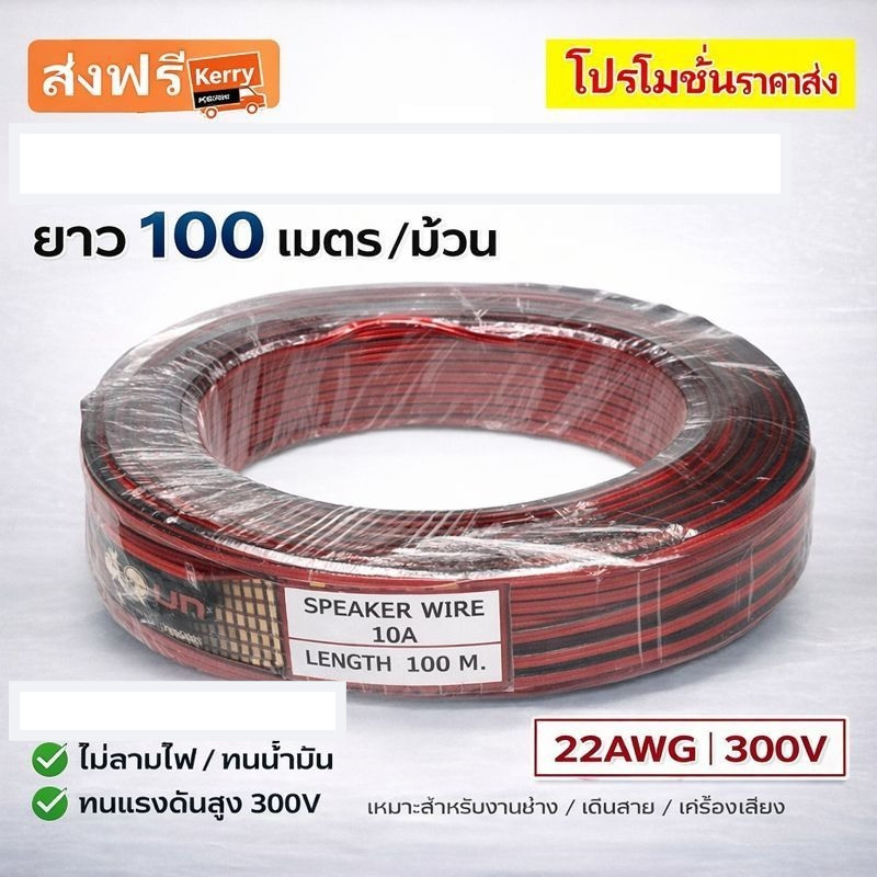 💥 มีราคาส่่ง (100 เมตร) SUN สายไฟ ดำ-แดง 22 AWG, ทองแดงผสมหุ้มฉนวน ขนาด 2*0.3 SQ.MM.