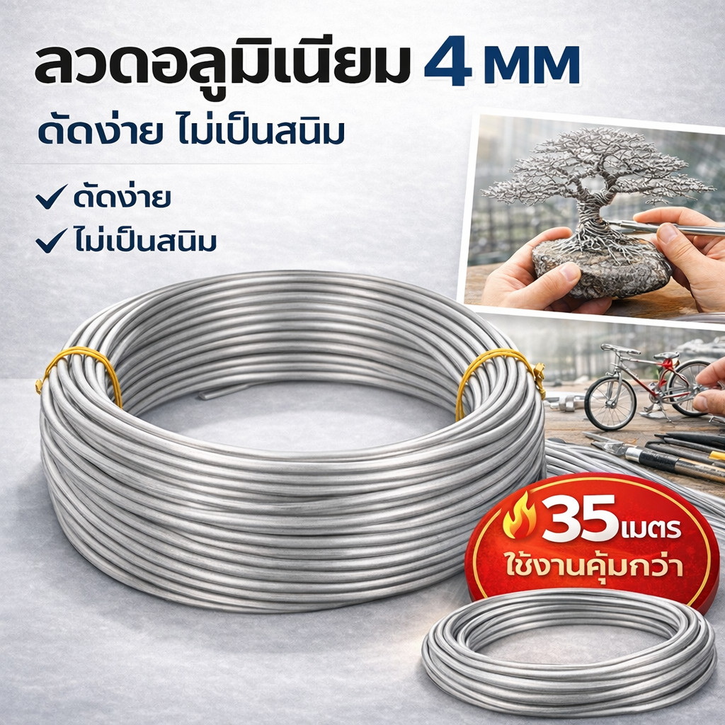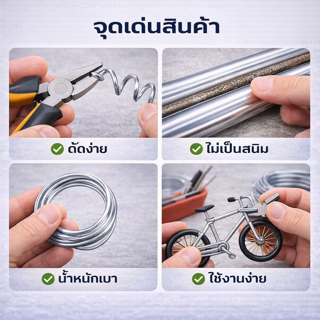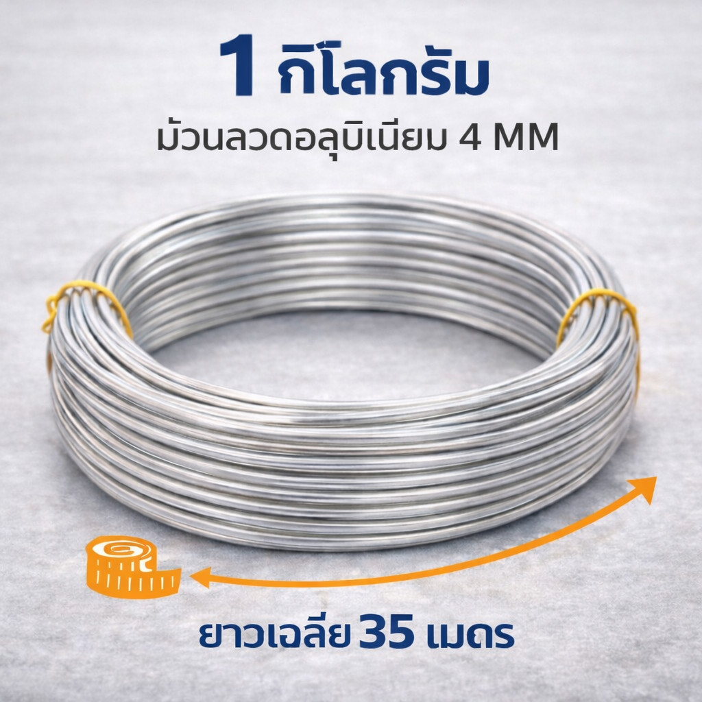 💥 (1 กิโลกรัม ) Ship ลวดอลูมิเนียมกลม ขนาด 4 mm สำหรับ งานไฟฟ้า มัดลูกถ้วย แร็คช่อง งานศิลปะ รัดชิ้นงาน