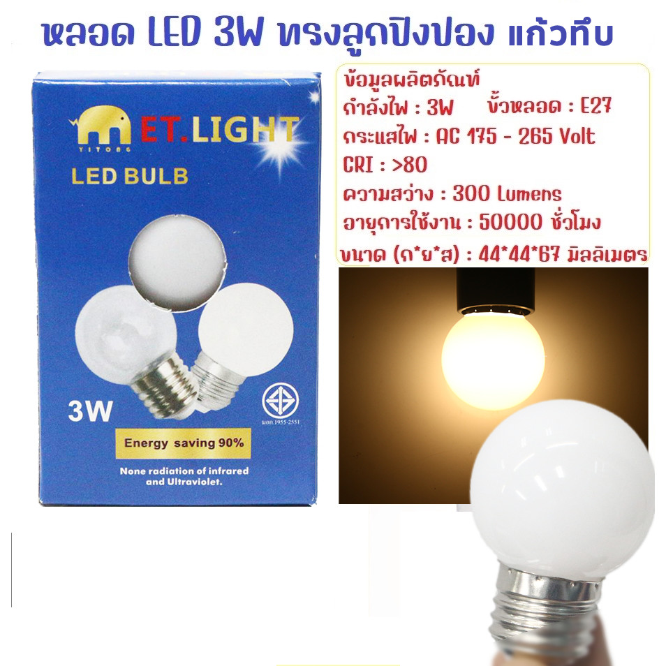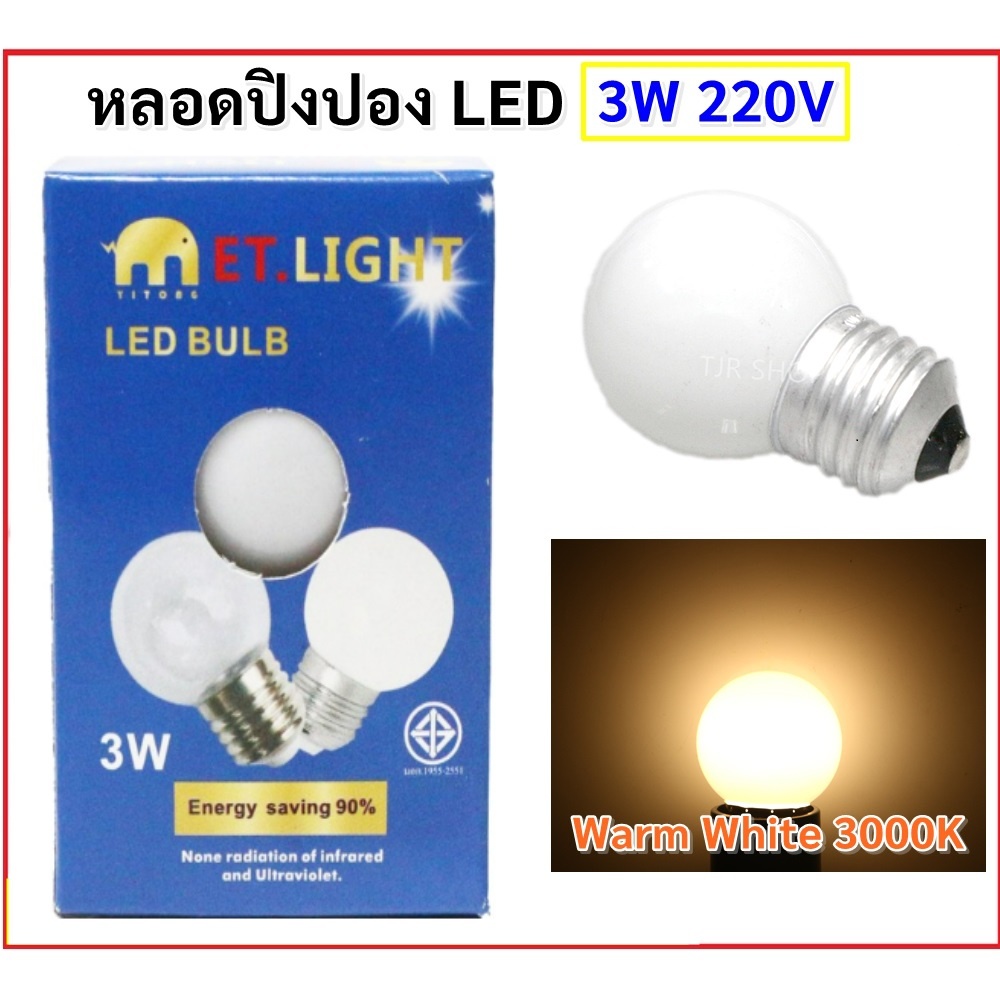 💥ส่งด่วน💥 ET.Light หลอดไฟ LED ทรงปิงปอง ขาวขุ่น 3W ขั้ว E27 สำหรับประดับตกแต่ง งานเทศกาล แสง Warm White