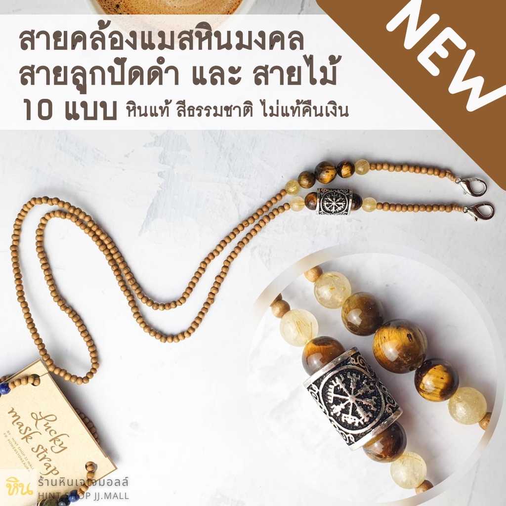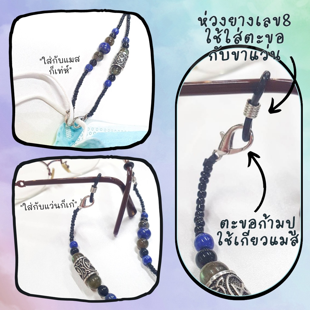 สายคล้องแว่น สายคล้องแมสหินมงคล อักษรรูน เสริมโชค สายดำและสายไม้ lucky maskstrap