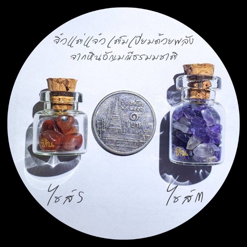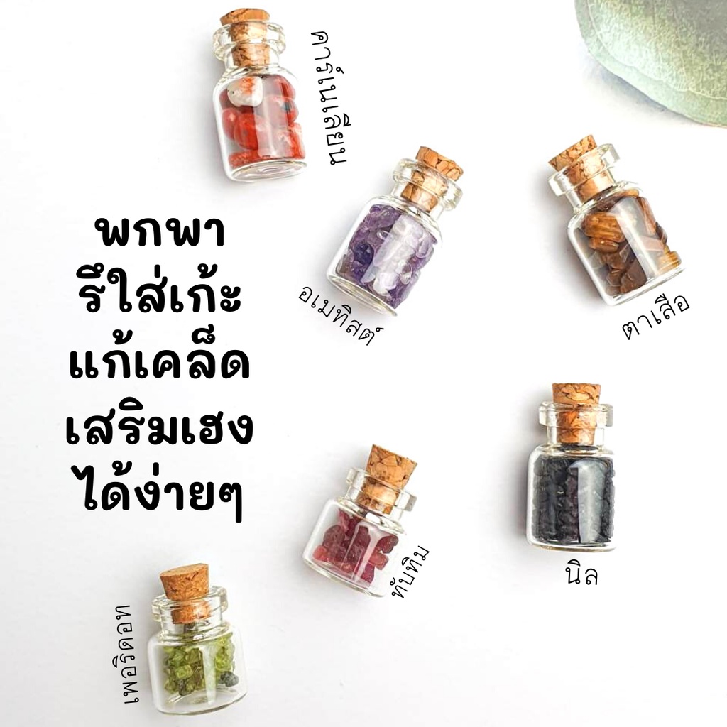 หินใหม่มาเพิ่ม เซเลสไทน์ หินอัญมณีในขวดแก้วมินิ เสริมดวงนำโชคพลอยแท้ ทับทิม แร่ดูดทรัพย์ ซิทริน