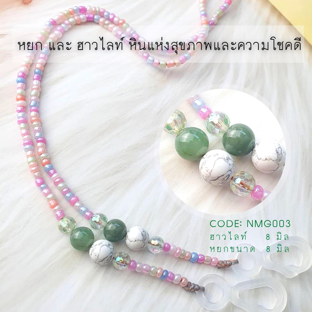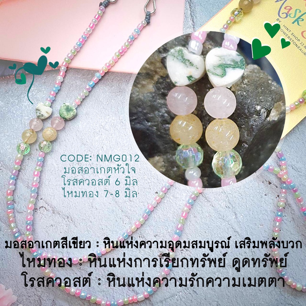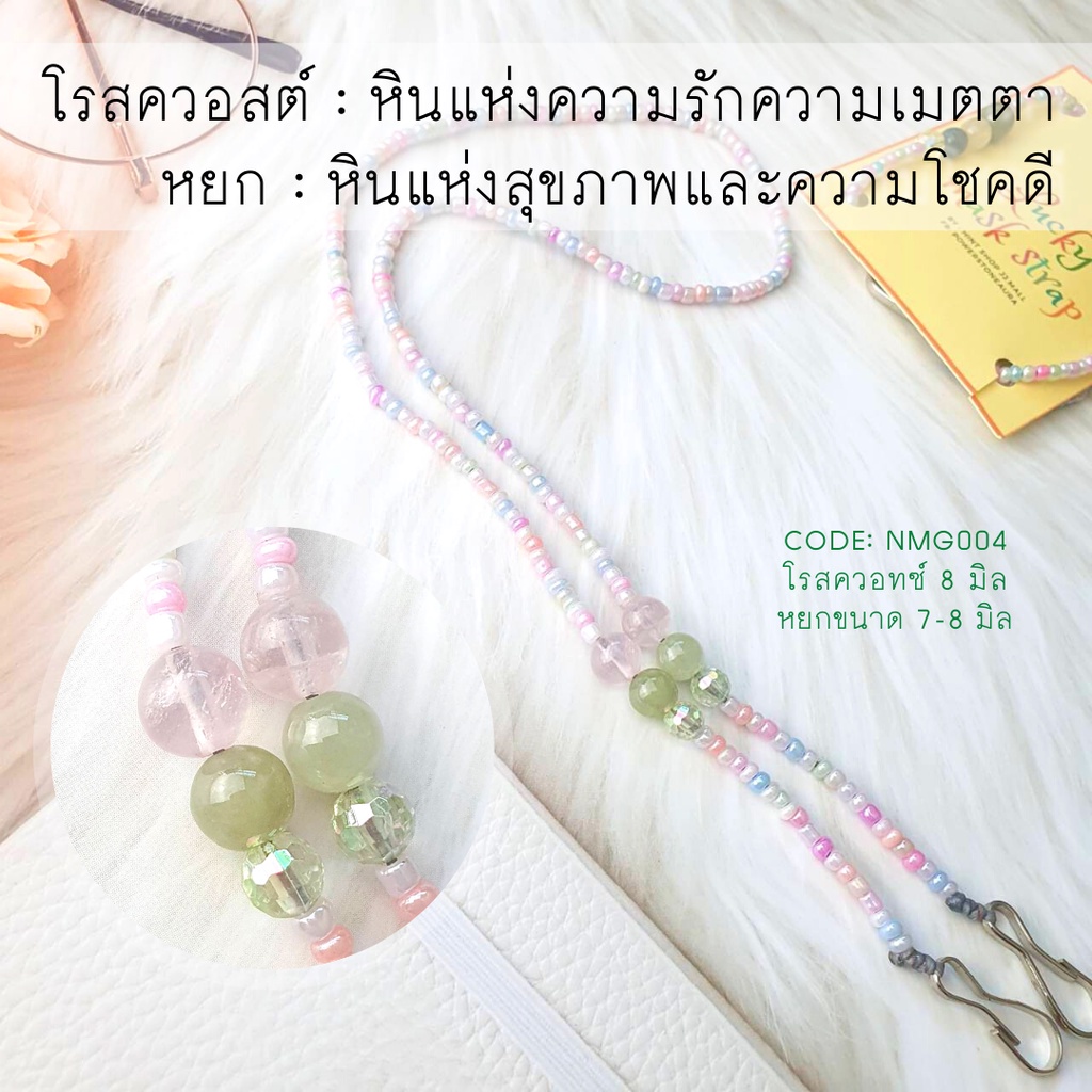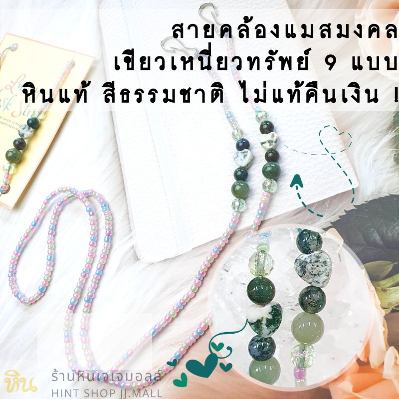 เขียวเหนี่ยวทรัพย์ สายคล้องแว่น สายคล้องแมสมงคลเรียกทรัพย์+ความรัก Lucky Mask Strap หยก และ มอสอาเกต