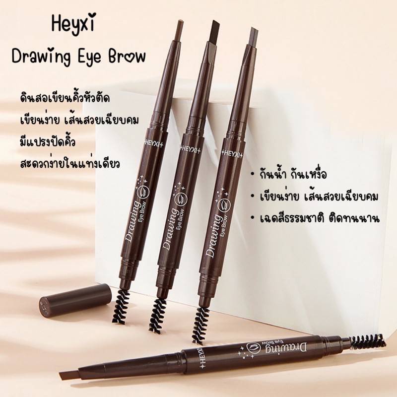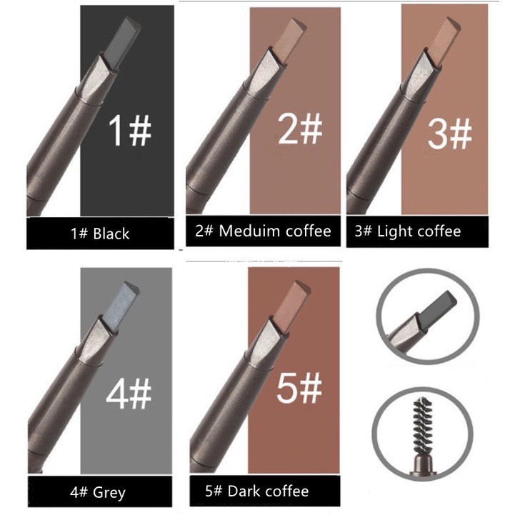 C09.ดินสอเขียนคิ้ว กันน้ำ ดินสอเขียนคิ้วแบบหมุน 2 in 1 มีแปรงปัดคิ้วในตัว มี 5 สีให้เลือก ไม่มีกล่อง