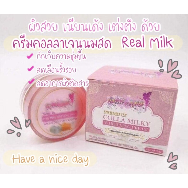 ❤️ ชุดครีมหน้าเด้ง ครีมไข่มุกผสมเซรั่ม + ครีมคอลลาเจนนมสด Real Milk & Madamkob ❤️