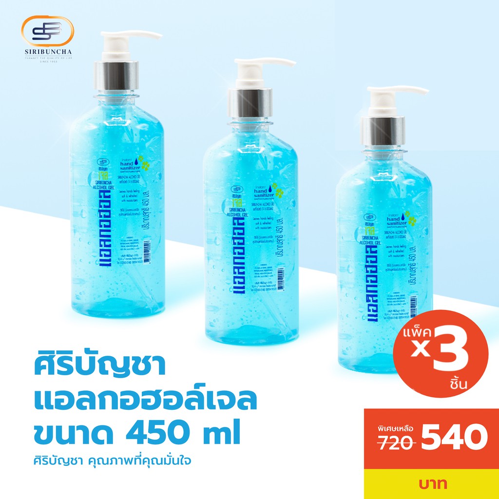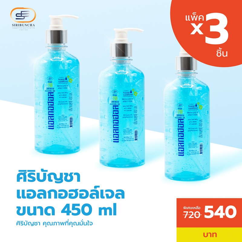 ศิริบัญชาแอลฮอลล์เจล 450 ml แพ็คx3ชิ้น