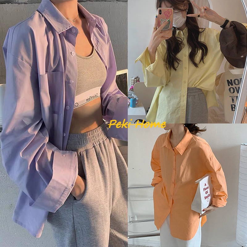 เสื้อเช ิ้ตโอเวอร์ไซส์ เสื้อเชิ้ตหลากสี เสื้อผ้าผู้หญิงสไตล์เกาหลีใส่กับอะไรก็ปัง!!