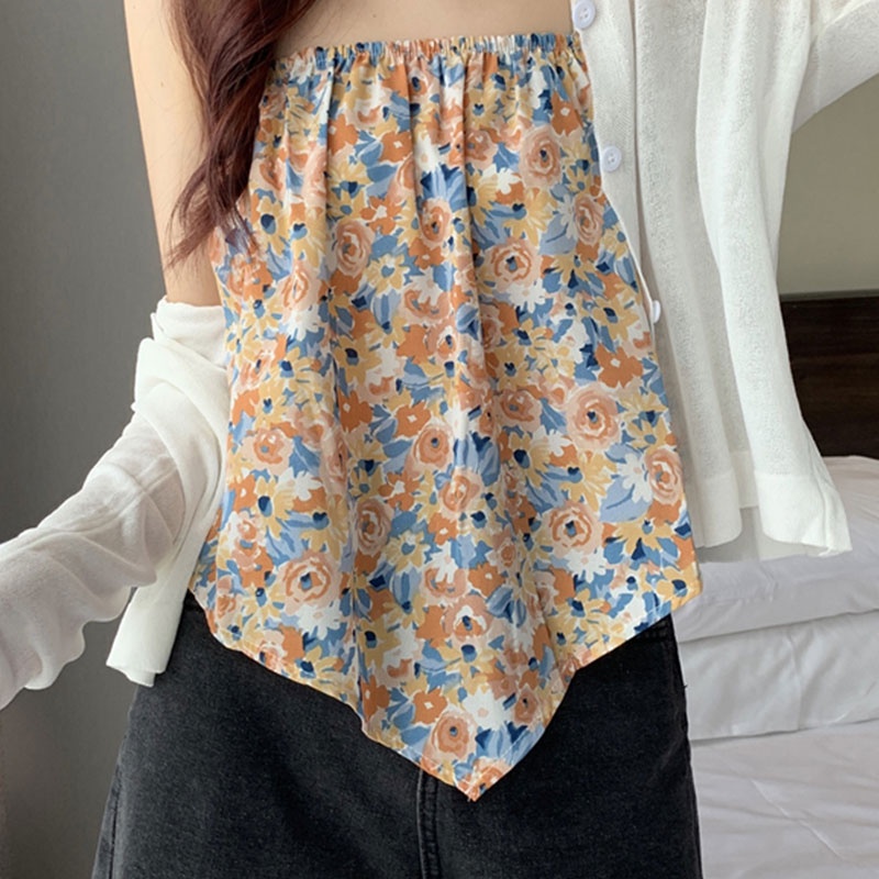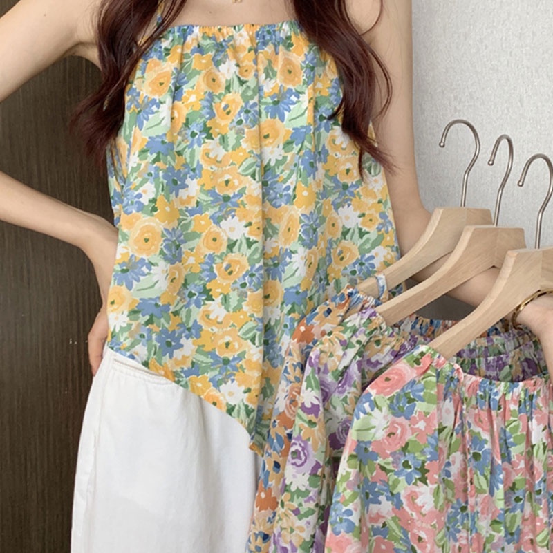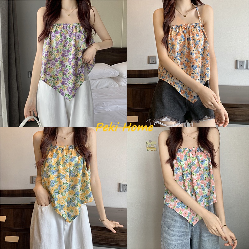 เเฟชั่นเสื้อผ้าผู้หญิง เสื้อครอปลายดอกไม้สีสดใสน่ารัก ราคาโปรโมชั่นสุดคุ้ม เสื้อสายเดี่ยวครอปน่ารักๆ