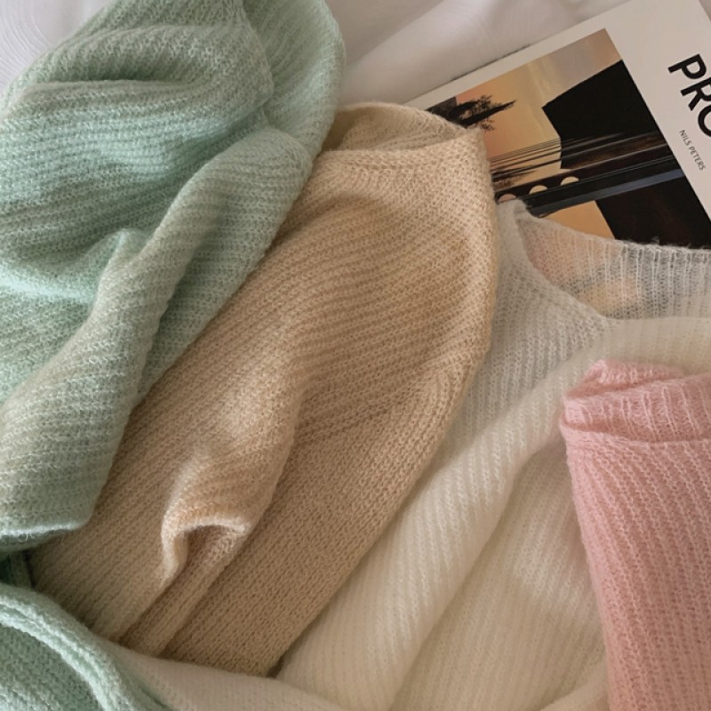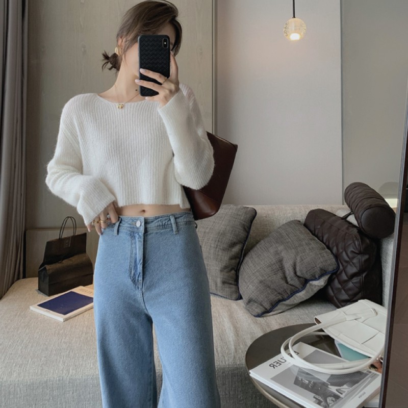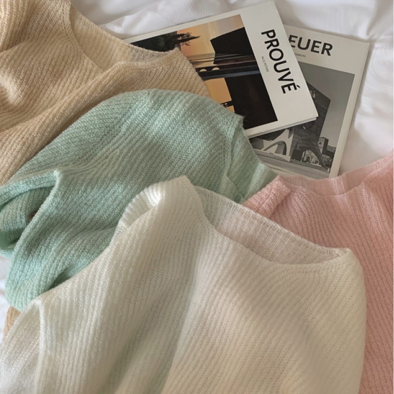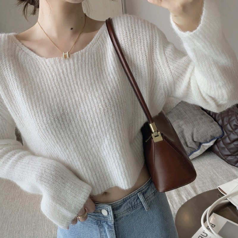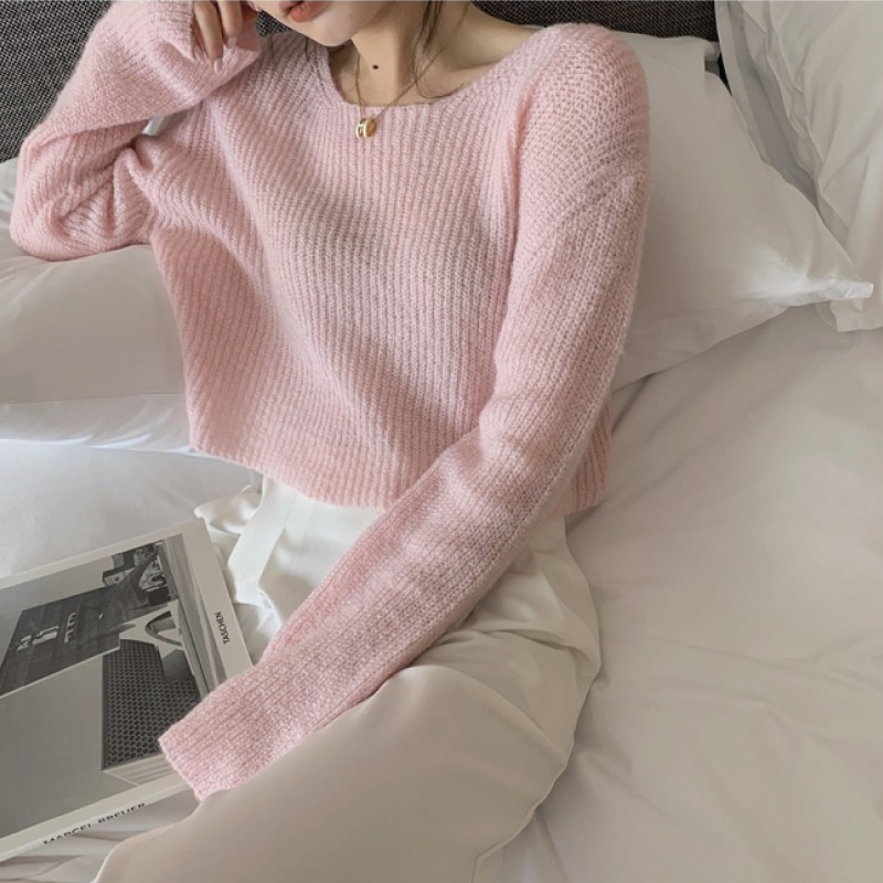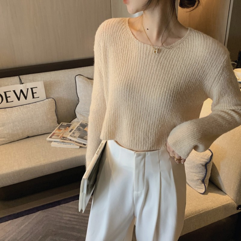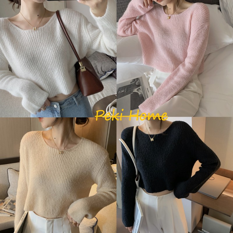 สเวตเตอร์ครอป รุ่น8A58 เสื้อไหมพรมแขนยาวตัวสั้น เสื้อแฟชั่นกันหนาวผู้หญิง