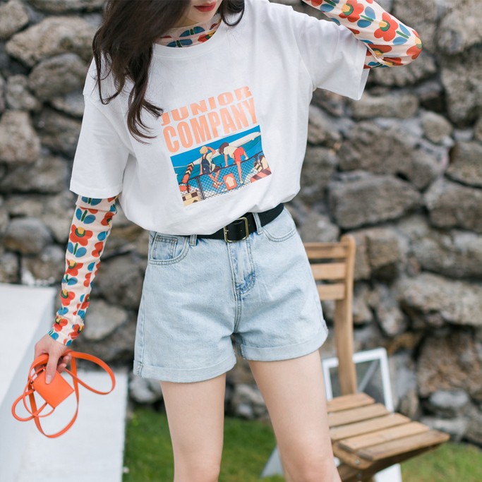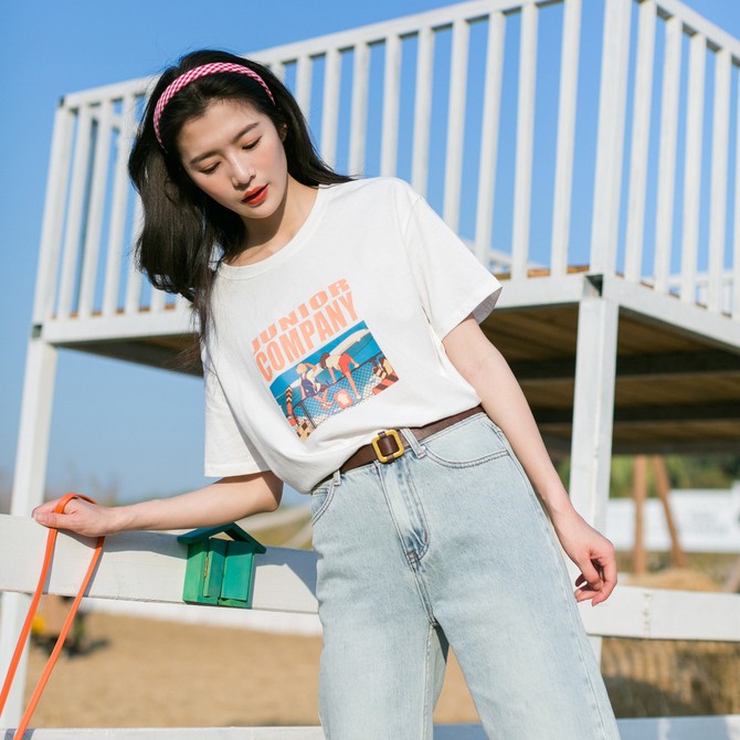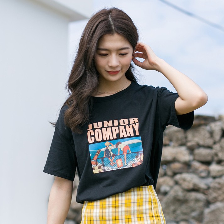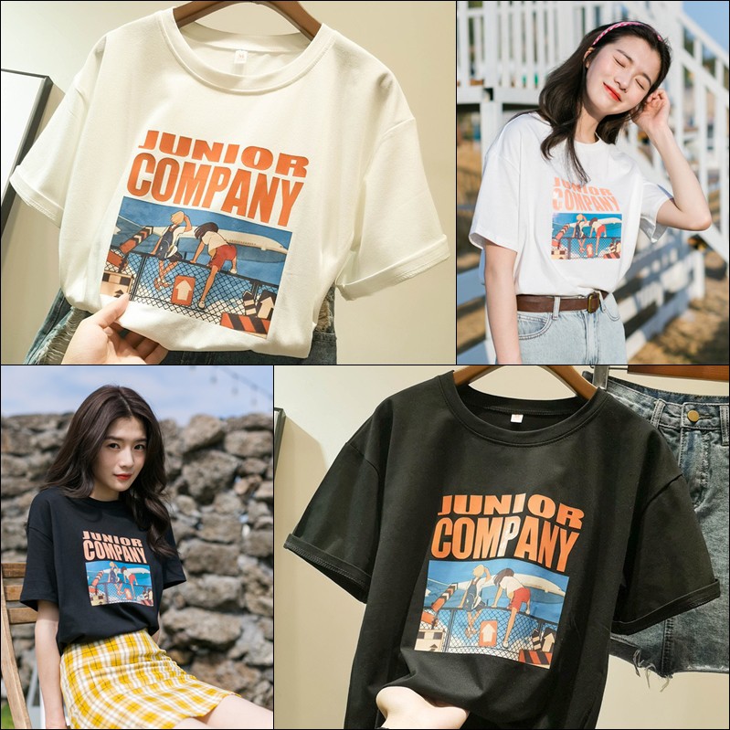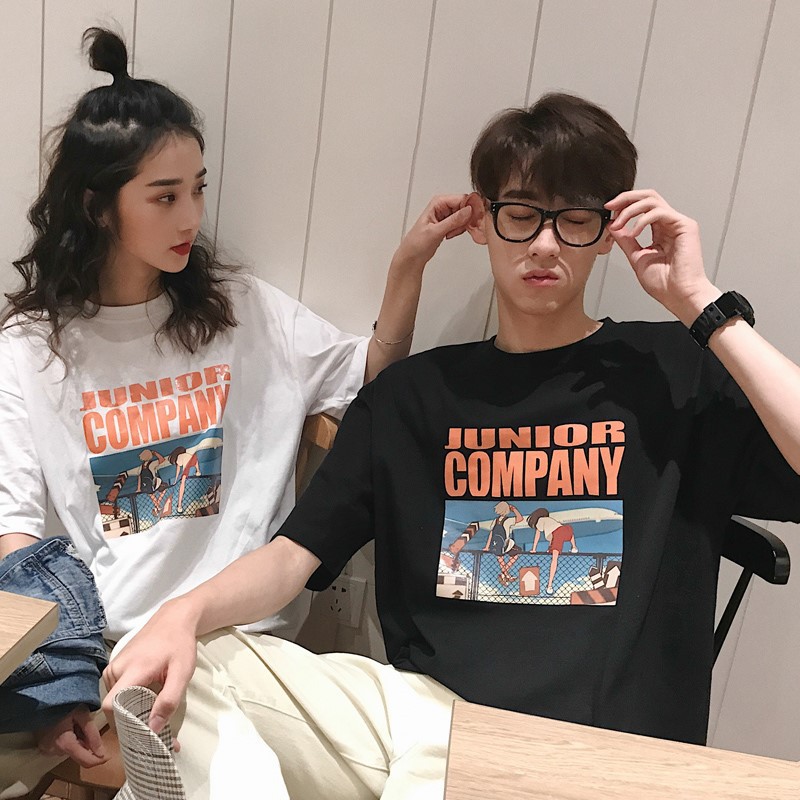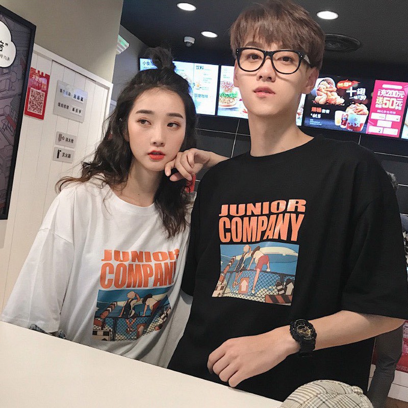 POOHPAND เสื้อยืดแฟชั่นคู่รัก T-Shirt สไตล์เกาหลี ทรงหลวม Oversize สวมใส่สบาย พิมพ์ลายดิจิตอล สีคมชัด Junior #8040