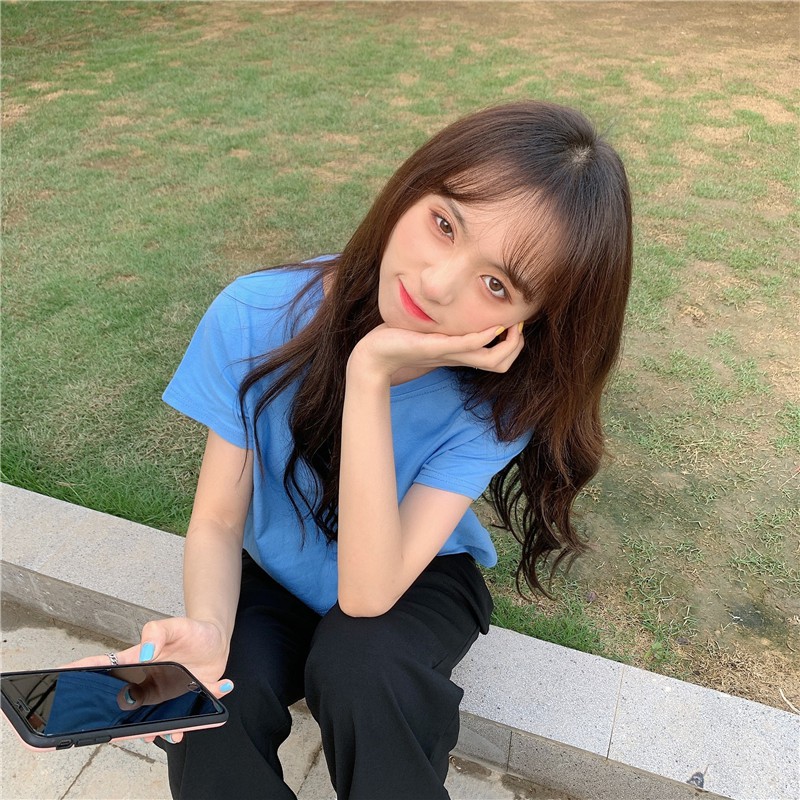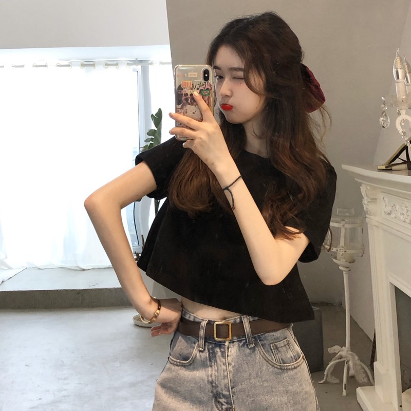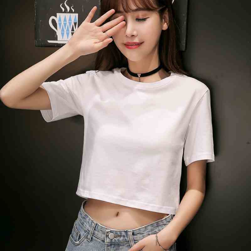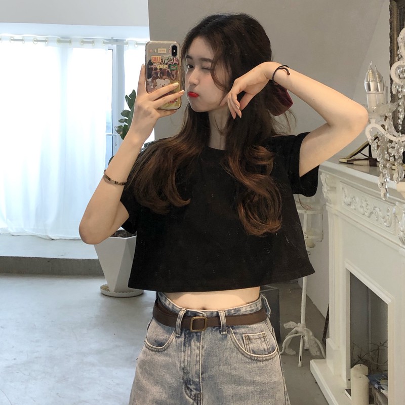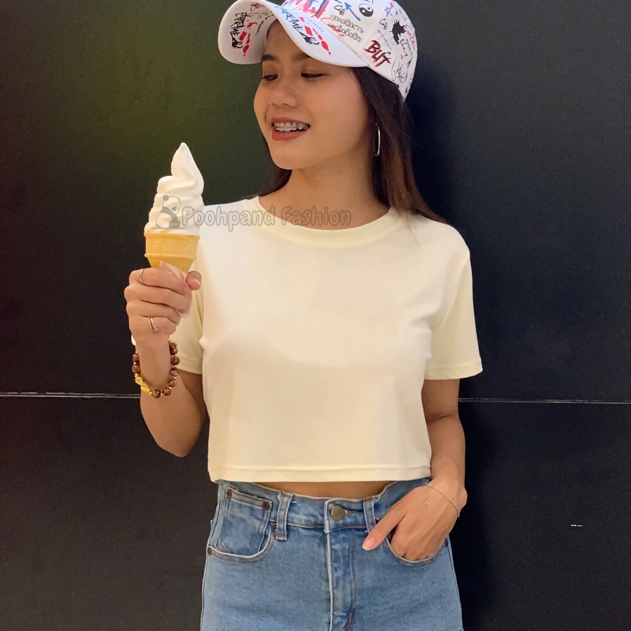 💙POOHPAND💙 เสื้อยืดผู้หญิง เสื้อครอป เสื้อเอวลอย สีขาว-ดำ-ฟ้า วัยรุ่นเกาหลี แฟชั่นเกาหลี สายแบ๊วน่ารัก #9000